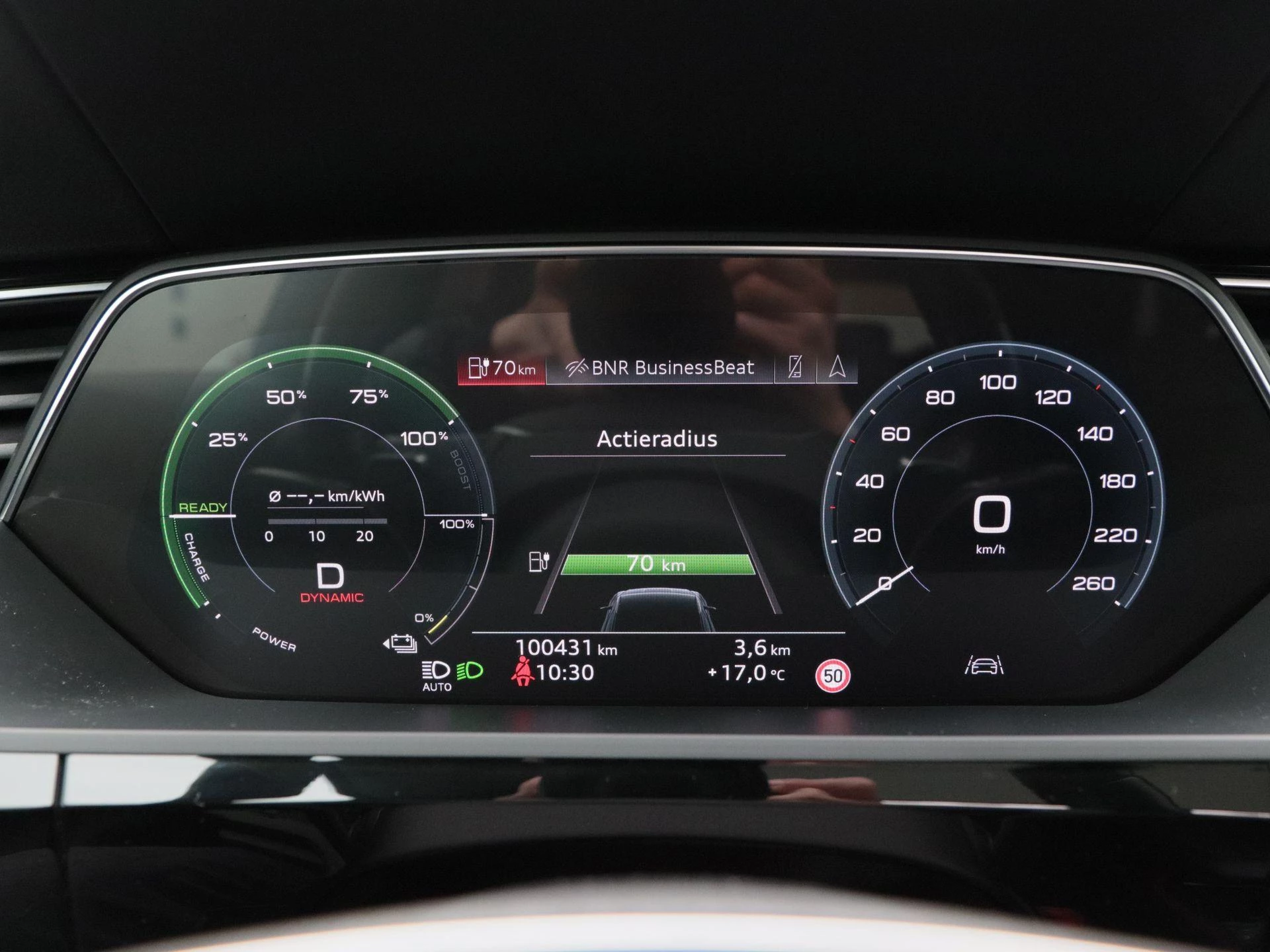 De veiligheids- en assistentiesystemen zijn van hoog niveau, met onder meer adaptive cruise control, dodehoekdetectie, parkeersensoren voor en achter, en een camera voor & achter. Het premium Bang & Olufsen-audiosysteem (B&O) levert indrukwekkende geluidskwaliteit die perfect past bij het stille karakter van elektrisch rijden.