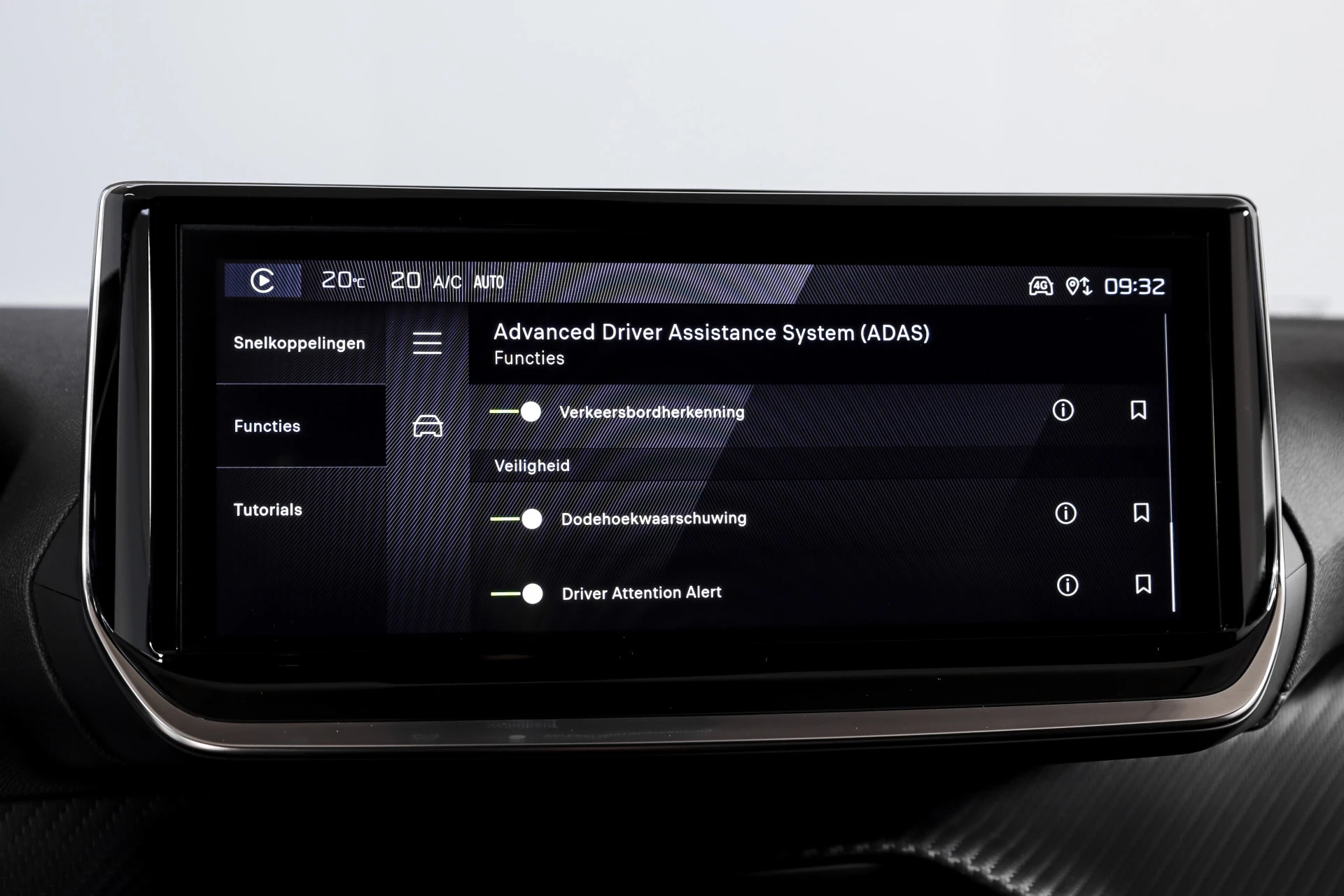 In deze auto zijn verschillende technologieën aanwezig die voor u het verkeer en de omgeving in de gaten houden en die desnoods ook kunnen remmen of bijsturen. Verkeersbord-detectie herkent verkeersborden en toont deze op het instrumentarium van de auto. Het Lane-keeping systeem doet precies wat nodig is: waarschuwen en corrigeren bij onbedoelde overschrijding van de rijstrooklijnen. De actieve dodehoekdetectie helpt ongelukken te voorkomen. Dankzij veiligheidsvoorzieningen als forward collision warning system, hill hold functie, brake assist, vermoeidheidsherkenning en bandenspanningcontrolesysteem, bent u steeds veilig onderweg.