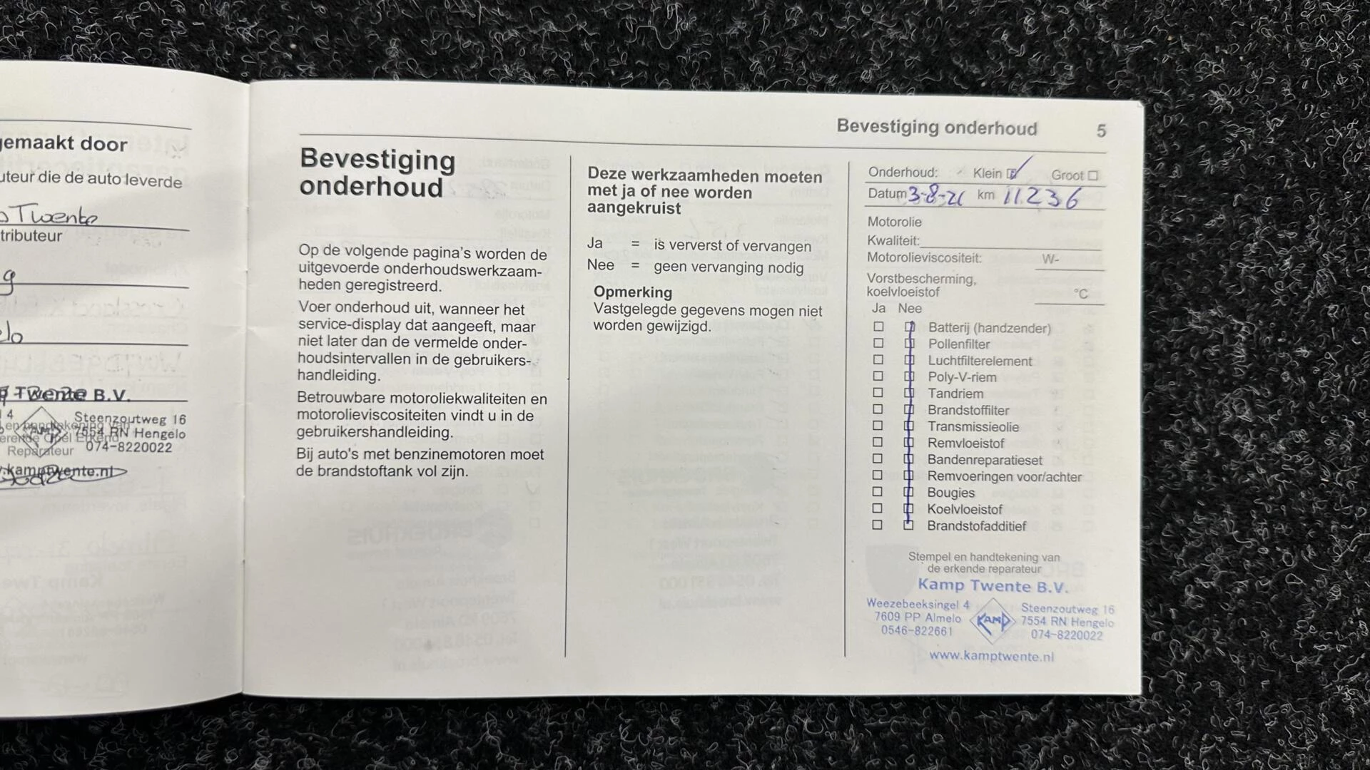 Inclusief onderhoudsbeurt.