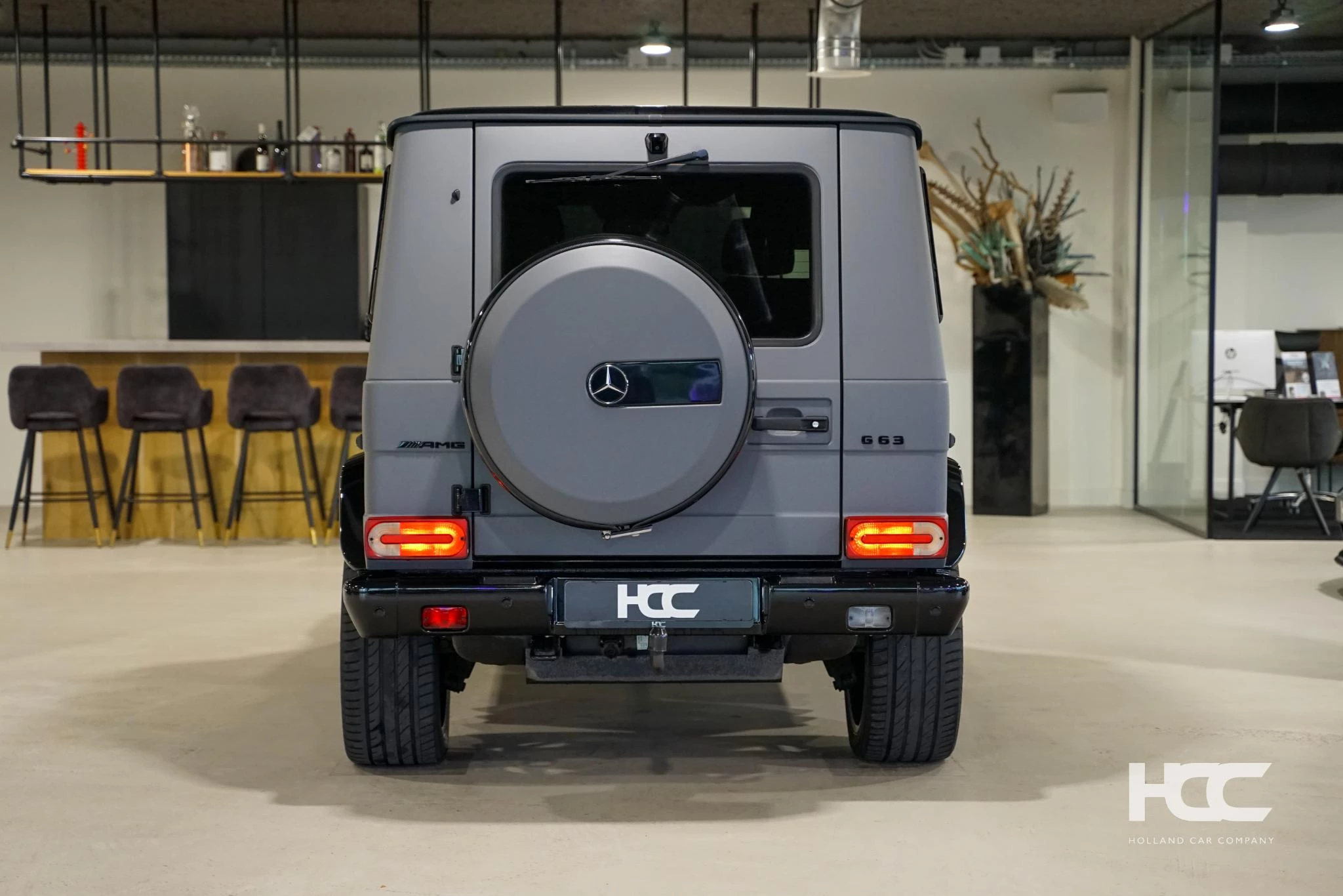 De auto is zwart metallic met zwart lederen Designo interieur. Momenteel is de G klasse voorzien van een mat grijze wrap.
