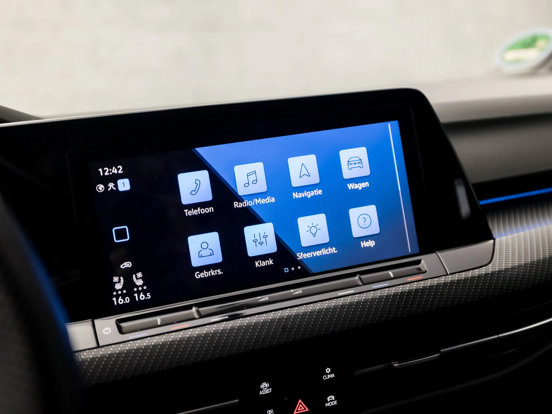 De Volkswagen Golf is ook voorzien van ADAS. Deze Advanced Driver Assistence Systems fungeren als extra ogen en oren: ze houden voor u de weg in de gaten en grijpen in wanneer dat nodig is. Verkeersborddetectie herkent tijdelijke en permanente verkeersborden langs en boven de weg. Met het Lane-keeping systeem gaat u nooit onbedoeld over de streep. Botsingen met een voorligger gebeuren relatief vaak. De forward collision warning slaat tijdig alarm als dat risico ontstaat, zodat u kunt ingrijpen. De veiligheid van deze auto wordt verder verhoogd door hill hold functie, vermoeidheidsherkenning, autonoom remsysteem en bandenspanningcontrolesysteem.