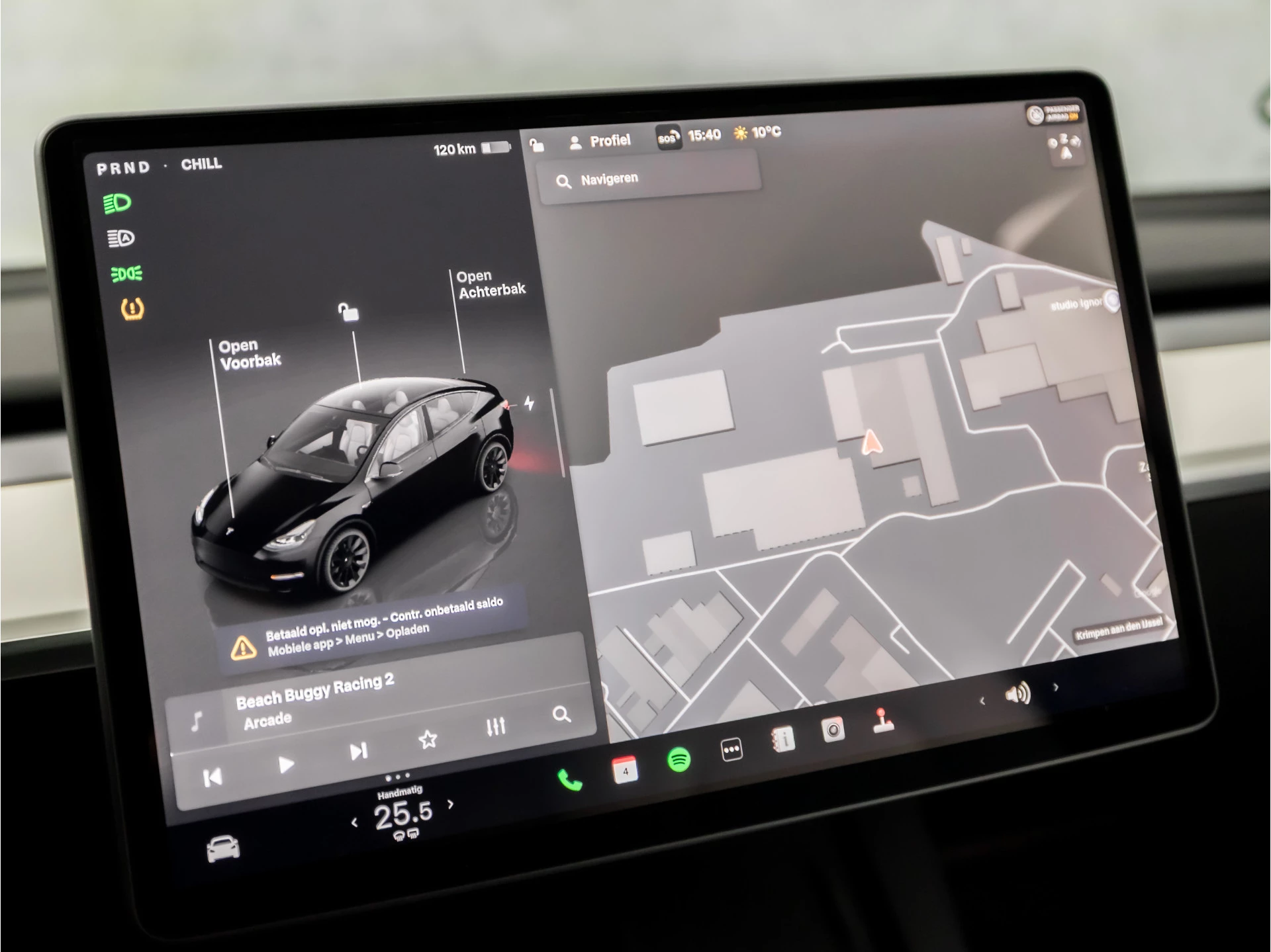 Deze auto is voorzien van innovatieve systemen die u onderweg begeleiden en beschermen. Veiligheid voorop: sensoren van de lane assist scannen de rijstrookstrepen en waarschuwen als u onbedoeld over de lijn gaat. In deze Tesla vinden we verder een dodehoekdetectie en autonoom remsysteem.