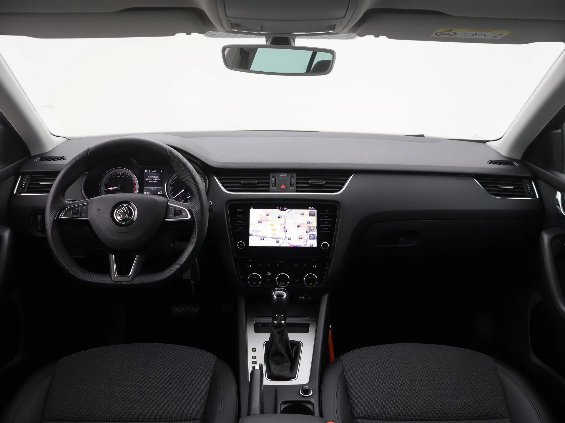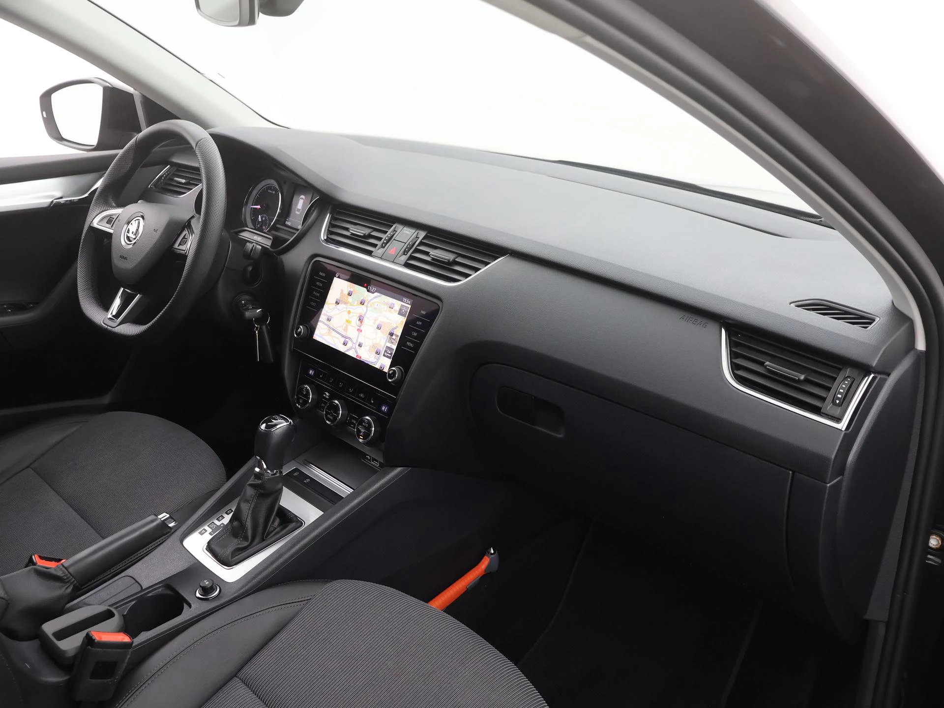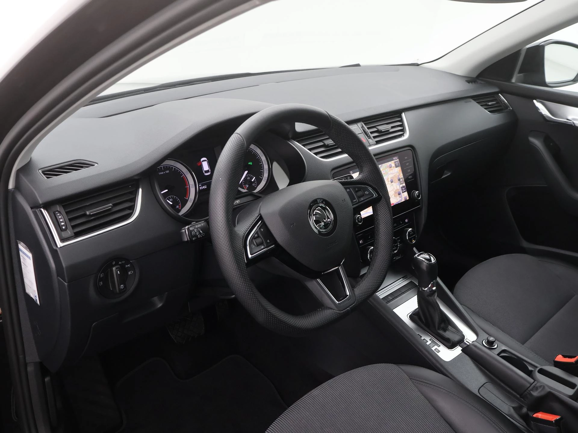 Deze Skoda is voorzien van spraakbediening voor het full map navigatiesysteem en voor het audiosysteem. Maar u kunt ook de knoppen op het stuur gebruiken. Geen gedoe met snoertjes! De draadloze telefoonlader zorgt onderweg weer voor een volle smartphone-accu. De automatische airconditioning zorgt voor een prettige binnentemperatuur. Superstrak parkeren wordt een eitje dankzij de parkeersensoren. De auto neemt u werk uit handen doordat hij zelf veel in de gaten houdt. Een regensensor en een automatisch inschakelbare verlichting nemen waar wanneer de ruitenwissers en het licht aan moeten. En deze auto heeft ook sportstuur met schakelpaddels, cruise control, automatisch dimmende buitenspiegels, centrale deurvergrendeling met afstandsbediening, boordcomputer en lederen versnellingspook als standaard uitrusting.