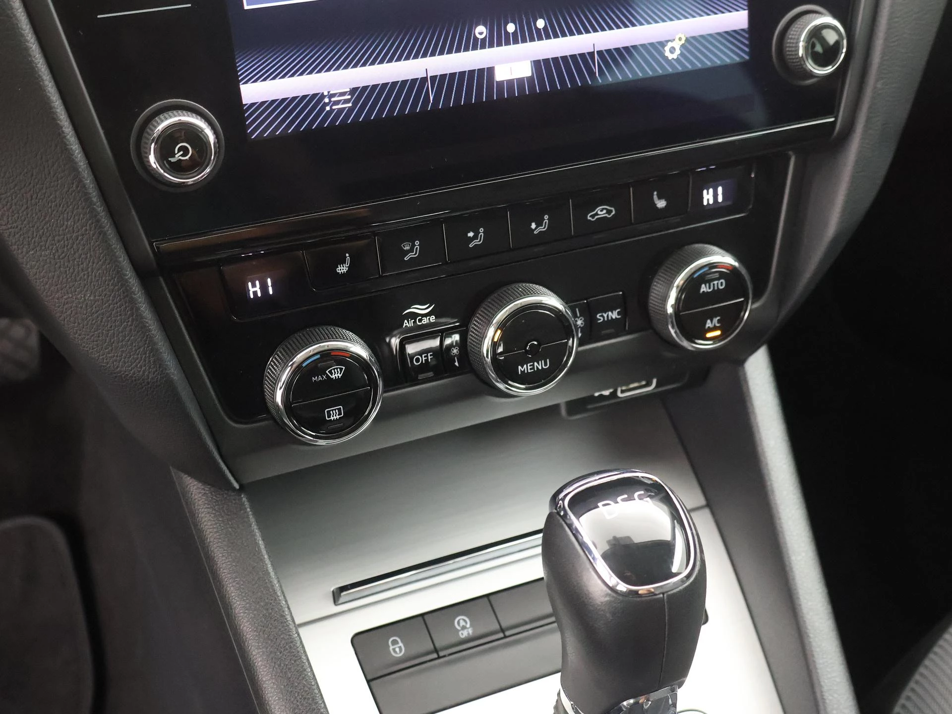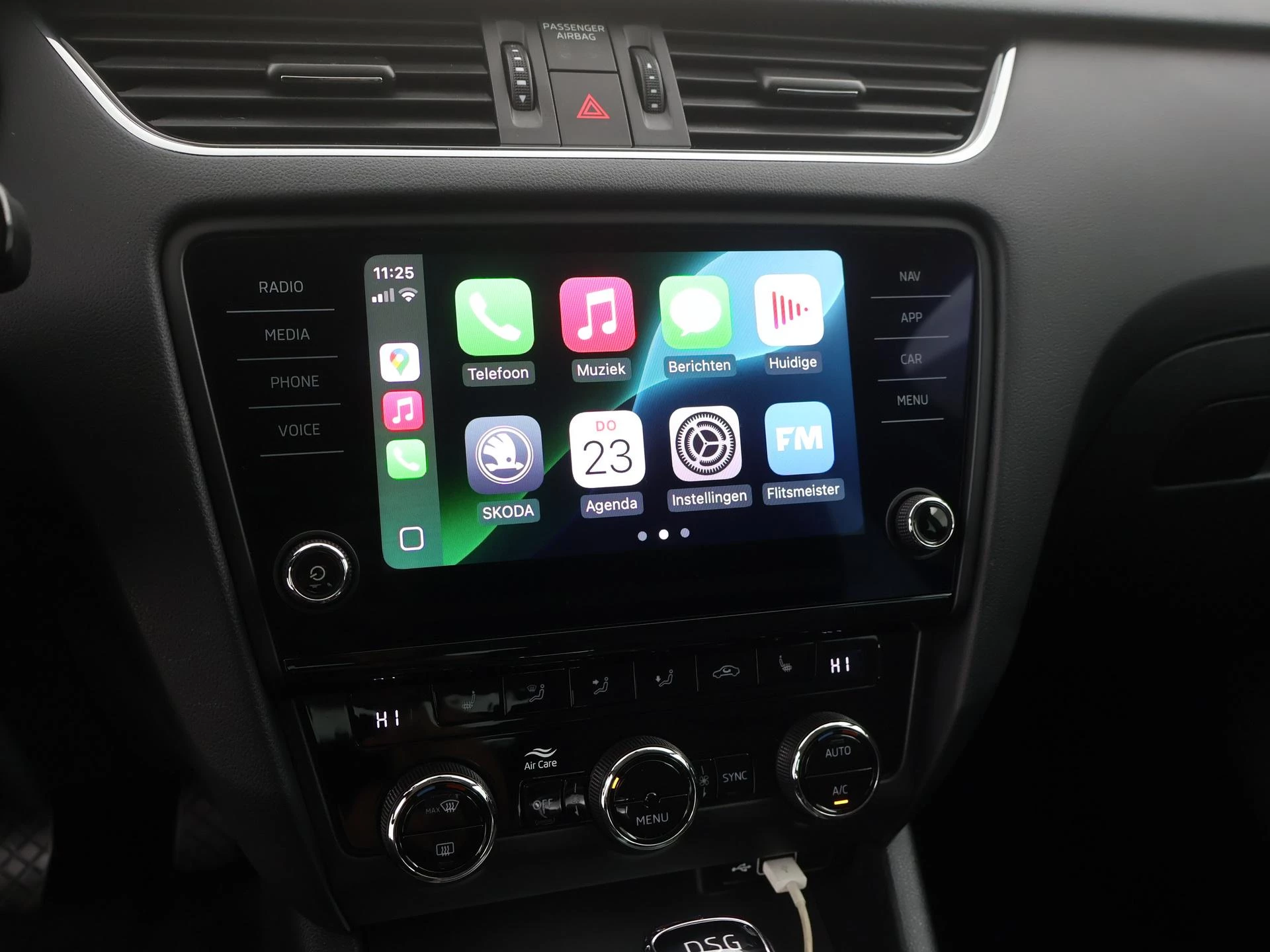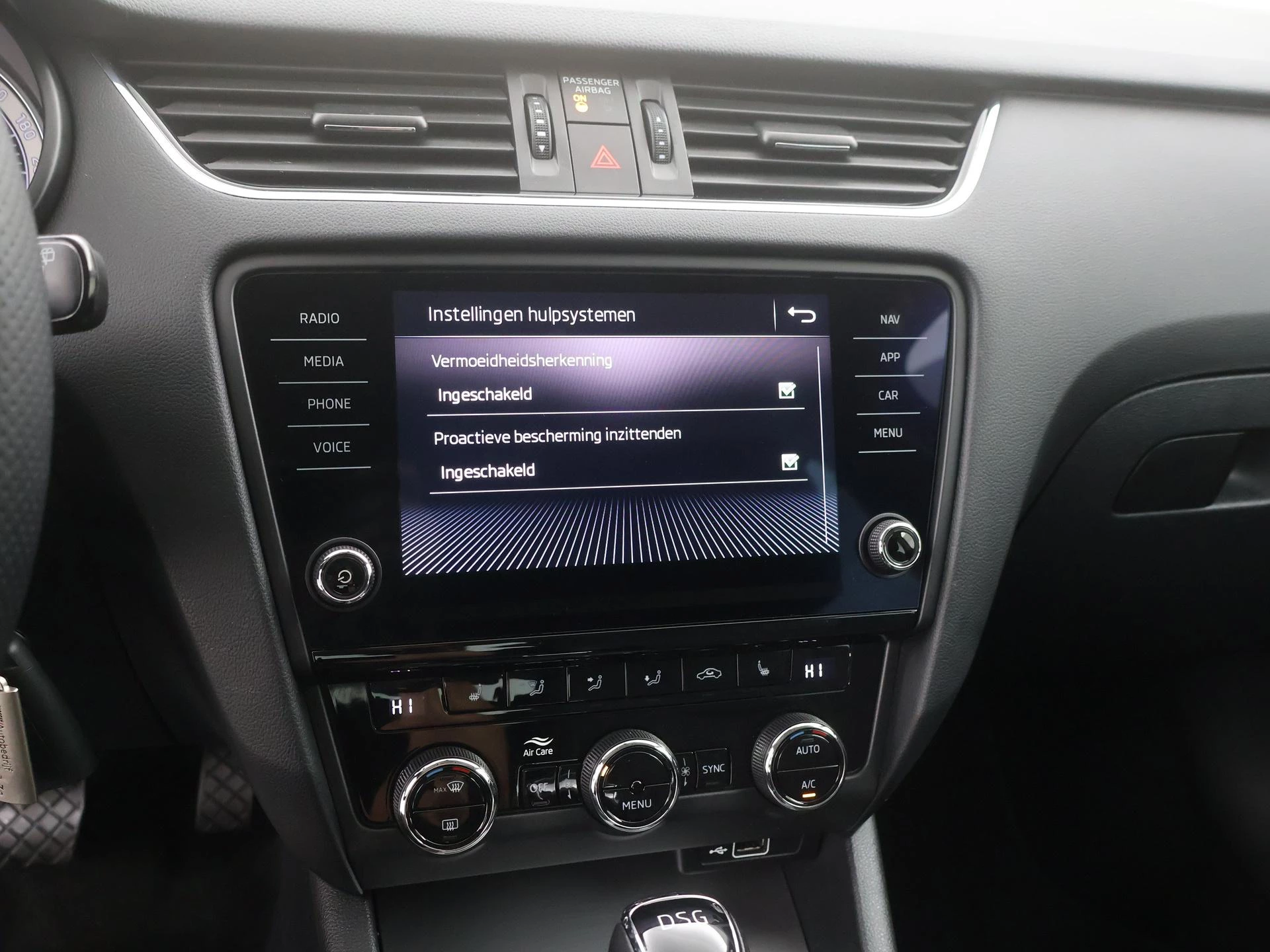 Deze Skoda is voorzien van spraakbediening voor het full map navigatiesysteem en voor het audiosysteem. Maar u kunt ook de knoppen op het stuur gebruiken. Geen gedoe met snoertjes! De draadloze telefoonlader zorgt onderweg weer voor een volle smartphone-accu. De automatische airconditioning zorgt voor een prettige binnentemperatuur. Superstrak parkeren wordt een eitje dankzij de parkeersensoren. De auto neemt u werk uit handen doordat hij zelf veel in de gaten houdt. Een regensensor en een automatisch inschakelbare verlichting nemen waar wanneer de ruitenwissers en het licht aan moeten. En deze auto heeft ook sportstuur met schakelpaddels, cruise control, automatisch dimmende buitenspiegels, centrale deurvergrendeling met afstandsbediening, boordcomputer en lederen versnellingspook als standaard uitrusting.