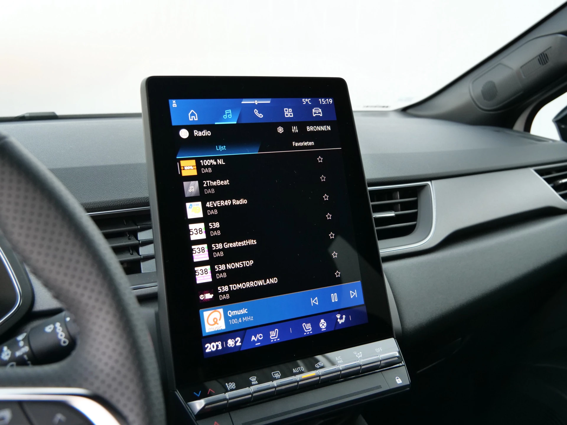 De achteruitrijcamera laat duidelijk zien hoeveel ruimte u nog heeft bij het inparkeren. Adaptive cruise control houdt de ingestelde snelheid vast en houdt afstand tot het voertuig voor u. U bedient het navigatiesysteem en het audio-installatiesysteem met DAB-radio via knoppen op het stuur, of zelfs met uw stem. Zo kunt u steeds uw aandacht gericht houden op de weg. Met de automatische airconditioning selecteert u de gewenste temperatuur. Het systeem doet de rest. Achter het stuur van deze Renault bent u niet alleen. De auto kijkt als het ware met u mee tijdens de rit. De regensensor schakelt de ruitenwissers in als het nodig is en de automatisch inschakelbare verlichting doet de lichten voor u aan. De Renault is standaard voorzien van: keyless entry, automatisch dimmende binnenspiegel en lederen stuur.