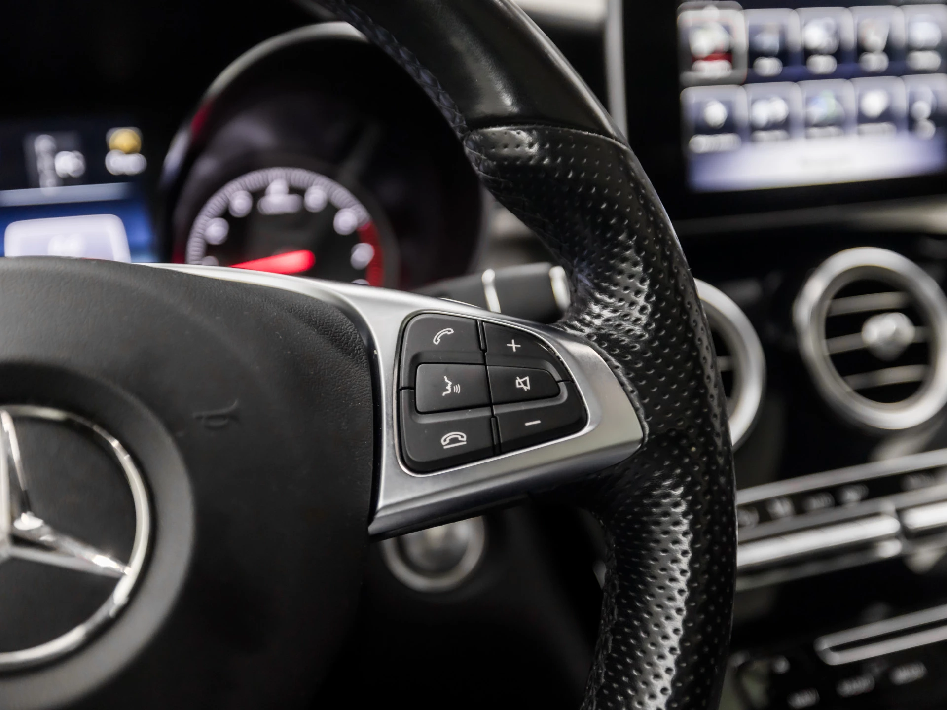 De vier camera's die samen de 360 graden camera vormen, bieden u de mogelijkheid om obstakels in elke richting te zien. Connected Services zorgen ervoor dat de belangrijkste functies en data van de auto altijd en overal te checken zijn. Gewoon via de app op de smartphone. In deze GLC-klasse vindt u niet alleen schakelaars op het stuur om het audio-installatiesysteem te bedienen en het navigatiesysteem met harde schijf, maar er is ook spraakbediening. Bij het wisselen van rijbaan kan een dode hoek ontstaan waardoor achterliggers te dichtbij kunnen komen. De achteropkomend verkeer waarschuwing geeft in dat geval automatisch een signaal. Nooit meer te warm of te koud. De automatische airconditioning zorgt altijd voor de temperatuur die u kiest. Ook is de Mercedes-Benz uitgerust met: met leder bekleed dashboard, sportstuur met schakelpaddels, regensensor, cruise control, automatisch dimmende buitenspiegels en isofix-aansluiting.