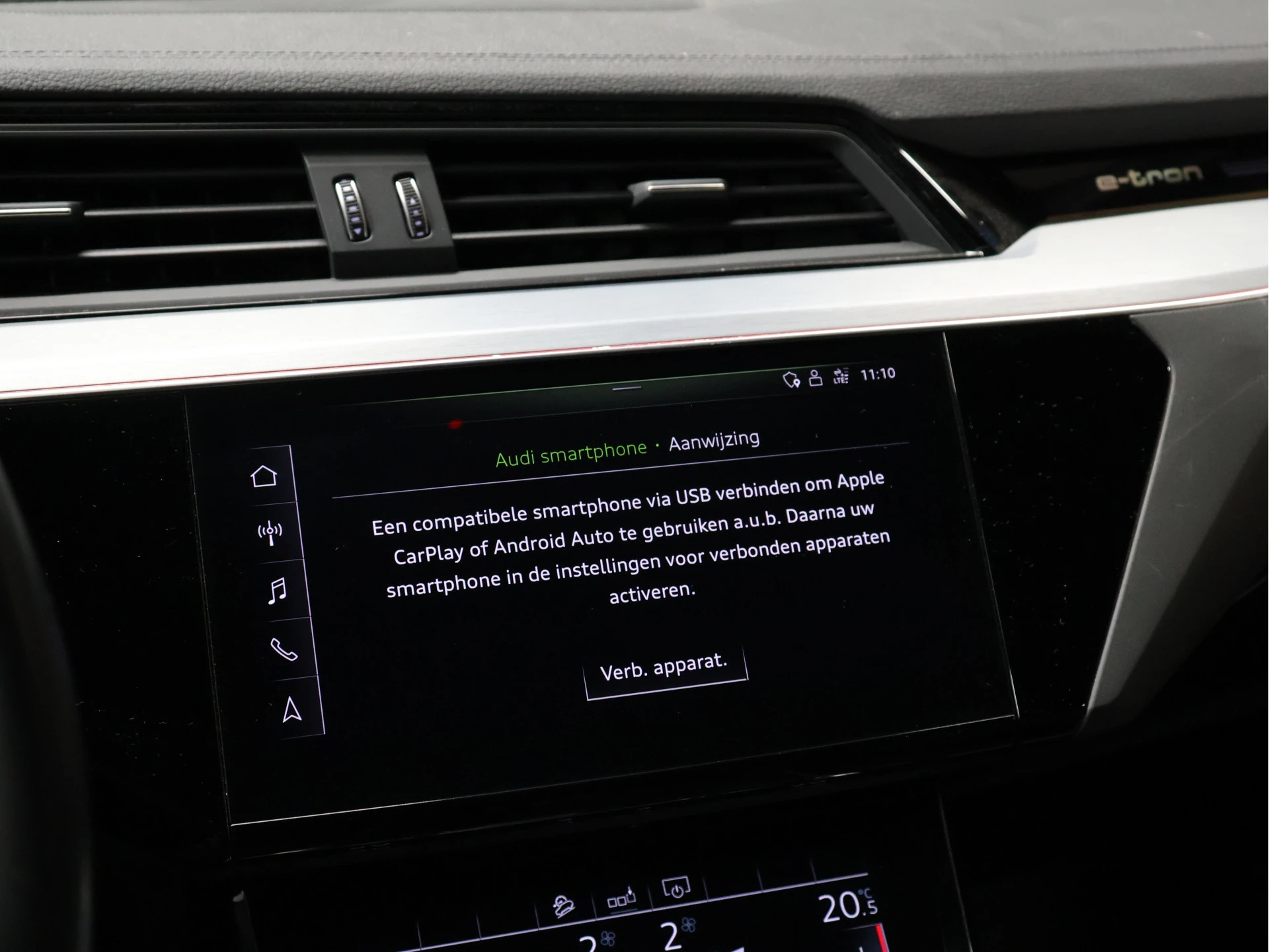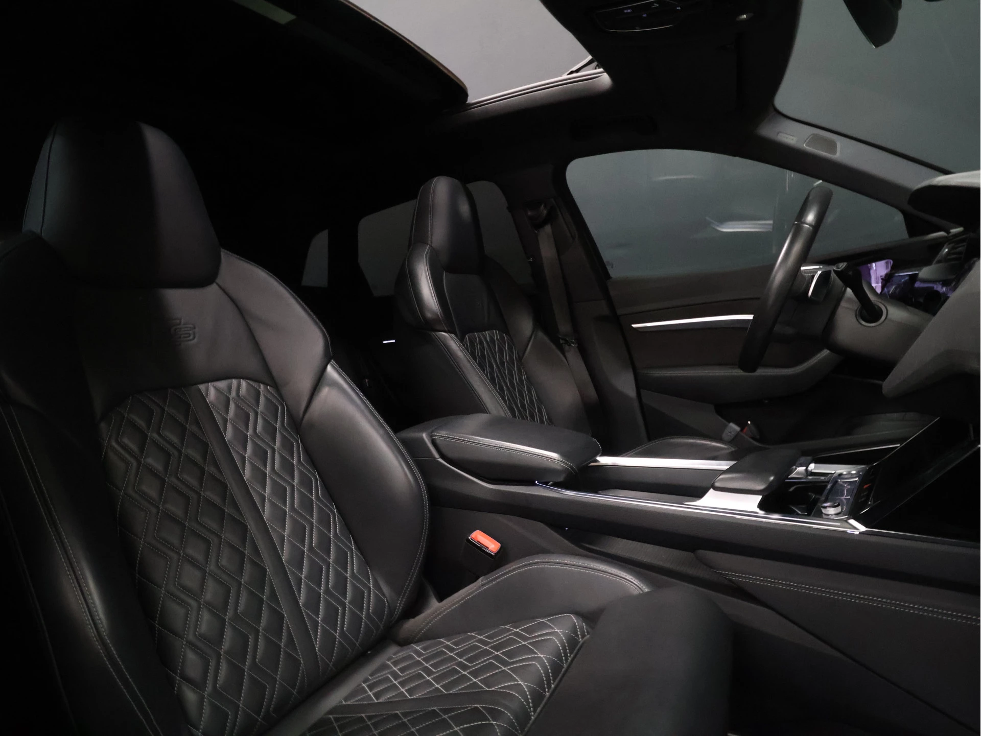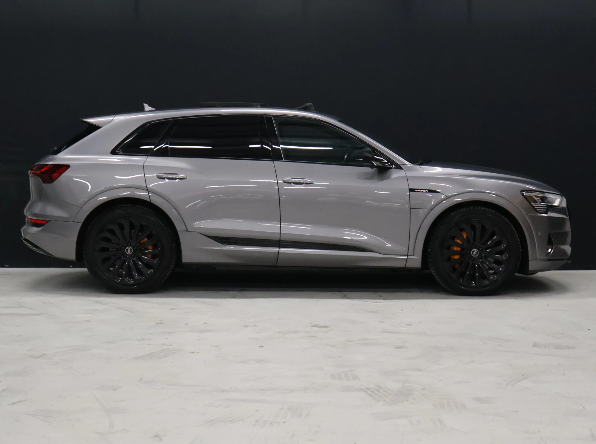 Efficiënte techniek en ongekende dynamiek. Het plezier van elektrisch rijden gaat in deze Audi e-tron samen met een spaarzaam stroomverbruik. De elektromotor laat u geluidloos over de weg gaan. Wat een verademing, en zoveel power ook nog! Een krachtige motor geeft deze auto zijn sportieve prestaties. Ongeacht het aantal inzittenden blijft de hoogte van deze Audi e-tron altijd constant, dankzij de luchtvering. Ga samen met uw bijrijder lekker zitten in de verwarmbare voorstoelen. De sportstoelen zien er niet alleen prachtig uit, maar zijn ook functioneel, zoals u kilometer na kilometer zult merken. Het elektrisch bediende glazenpanorama dak zorgt voor licht en gevoel van ruime. Een praktische extra is de elektrisch bedienbare achterklep die opent en sluit met een druk op de knop. Afzien is er bij deze Audi e-tron niet bij. Zelfs achterin vinden we de verwarmde achterbank. Bij de rijke uitrusting horen ook 21 inch lichtmetalen velgen, LED koplampen, warmtewerend glas, in delen neerklapbare achterbank, LED-achterlichten en verstelbare lendensteunen.