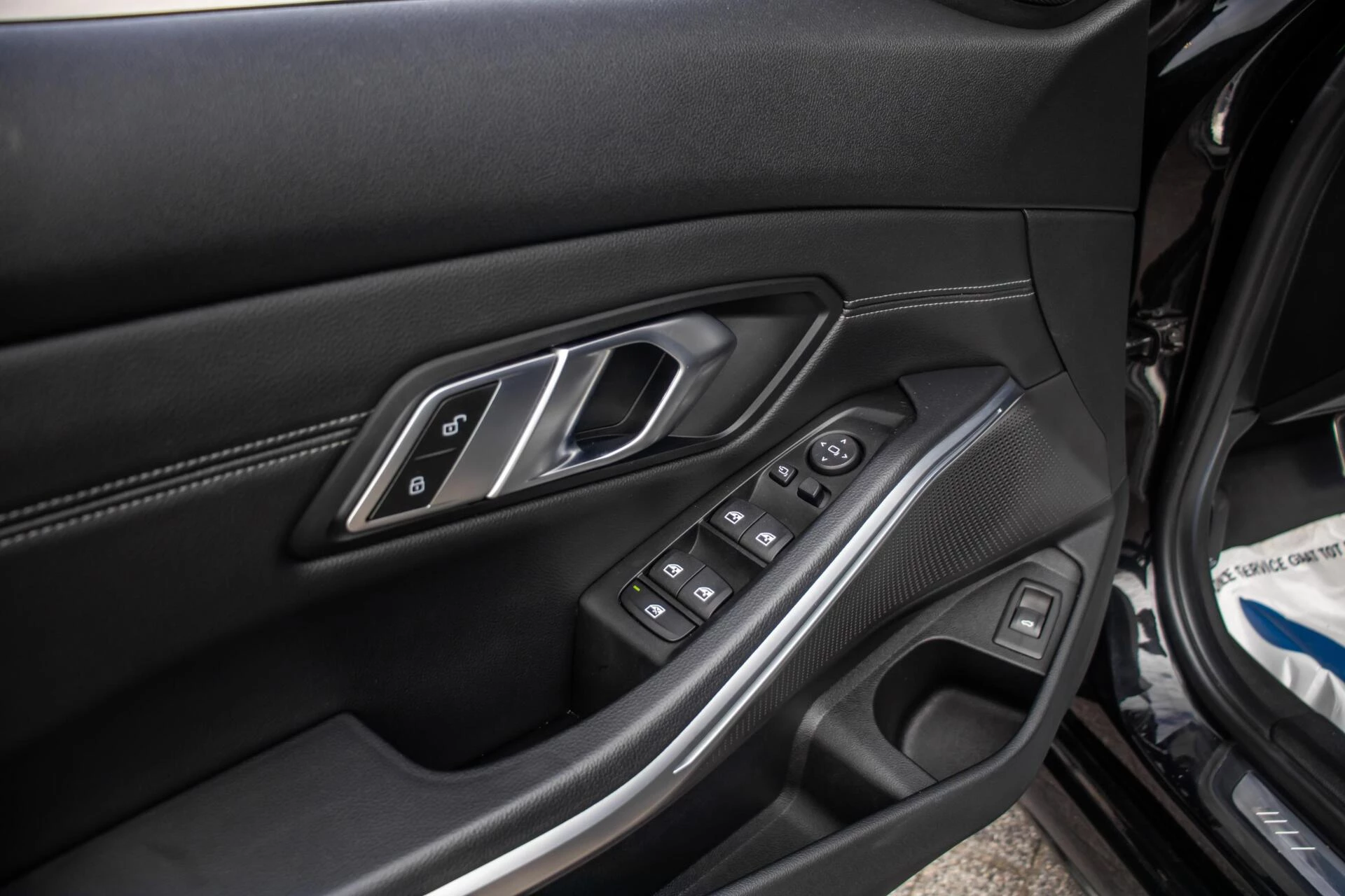 Deze 330i is een absolute verschijning. De zwarte carrosserie vormt een gedurfd en uniek contrast met de 19 inch bronzen Arceo velgen, wat de auto een exclusieve en sportieve 'custom' look geeft. Het M-Sport pakket met zijn dikke bumpers en hoogglans zwarte details onderstreept zijn potente karakter. Dankzij het grote panoramadak oogt de auto niet alleen van buiten indrukwekkend, maar geniet u binnenin ook van maximale lichtinval en een ruimtelijk gevoel.