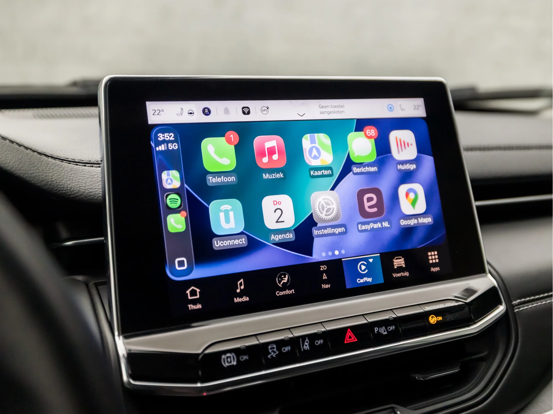 Voor het overzicht tijdens iedere rit is deze Jeep Compass voorzien van een gemakkelijk afleesbaar digitaal dashboard. Kommaar-kommaar-kommaar, aldus de achteruitrijcamera. Iedere centimeter vrije ruimte komt haarscherp in beeld. Schadevrij inparkeren maar! Adaptive cruise control houdt de ingestelde snelheid vast en houdt automatisch afstand tot uw voorligger. De auto's van vandaag rijden niet alleen subliem, maar luisteren ook goed. Via een speciale app kunt u overal diverse functies controleren en de status van de auto inzien. Het navigatiesysteem en het audio-installatiesysteem (met DAB-ontvangst!) bedient u met knoppen op het stuur. Natuurlijk behoren met leder bekleed dashboard, automatische airconditioning, draadloos opladen, regensensor, keyless entry en automatisch dimmende binnenspiegel ook tot de uitrusting van deze complete auto.