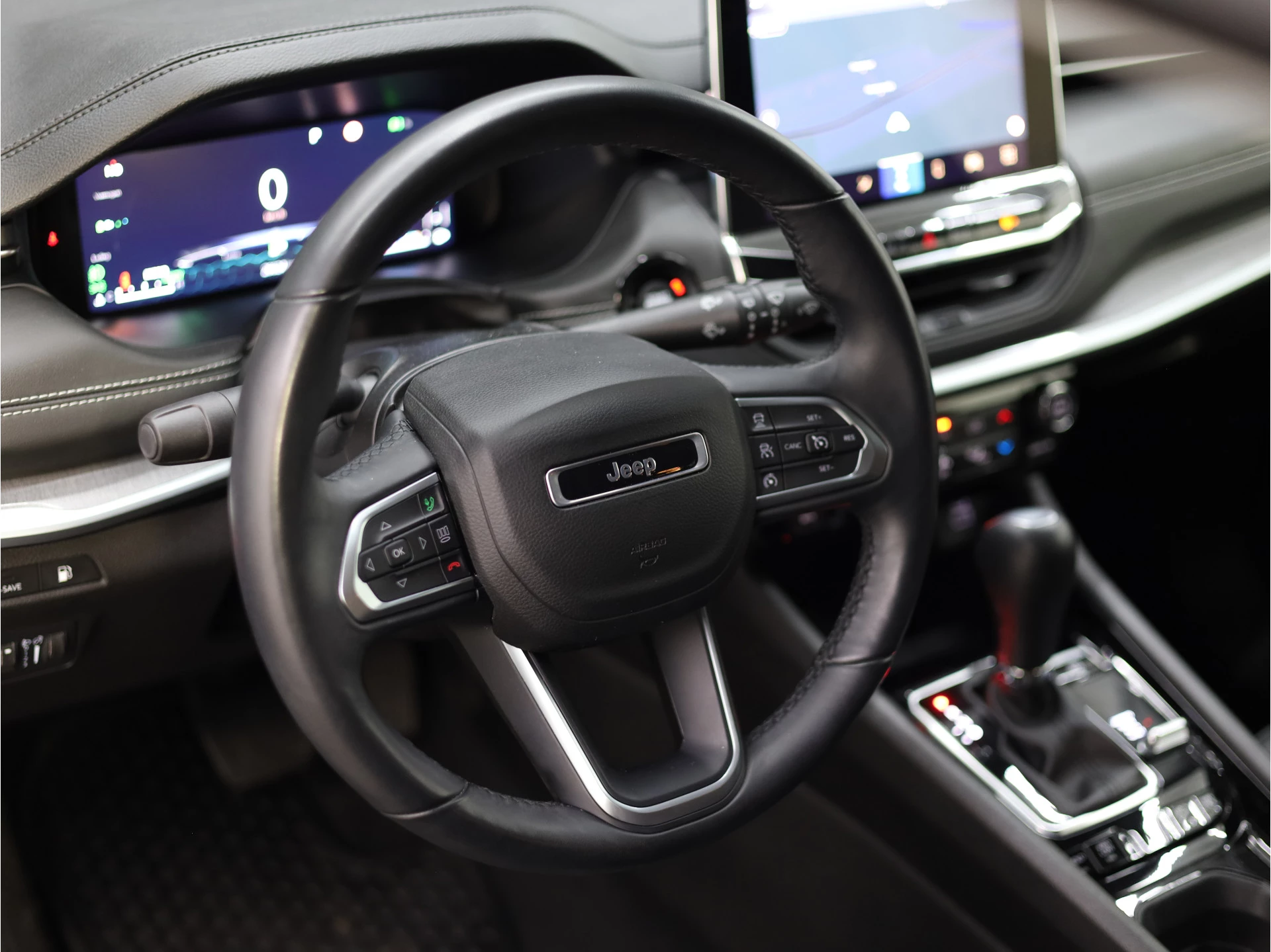 Ervaar de wonderen van de digitale mobiliteitswereld waarbij alles wat u wenst op het digitale dashboard verschijnt. Kommaar-kommaar-kommaar, aldus de parkeerhulp met achteruitrijcamera. Iedere centimeter vrije ruimte komt haarscherp in beeld. Schadevrij inparkeren maar! Met adaptive cruise control houdt de auto zelfstandig afstand tot uw voorligger. Een veiligheidsverhogende optie waarmee u comfortabel onderweg bent. Ingericht op Connected Services, voor een nog veiligere en comfortabelere rit. Het full map navigatiesysteem brengt u soepel en vlot naar uw bestemming. De uitrusting van deze Jeep is met automatische airconditioning, draadloos opladen, DAB ontvangst, regensensor, keyless entry en automatisch dimmende binnenspiegel behoorlijk compleet.