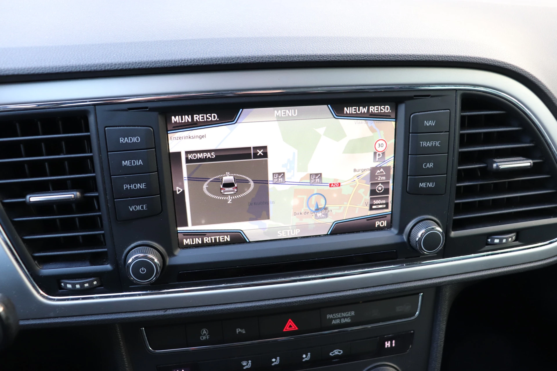 Pragmatisch en veilig als deze auto is, beschikt hij over diverse veiligheidssystemen. Bij de veiligheidssystemen van deze SEAT hoort ook de verkeersbord-detectie. Die leest tijdens het rijden als het ware met u mee en attendeert u op de significante verkeersborden langs en boven de weg. Het Lane-keeping systeem garandeert dat u zich niet onverhoeds buiten de lijnen van de rijstrook begeeft. Even stilstaan op een hellend wegdeel is een eitje dankzij de hill hold control.