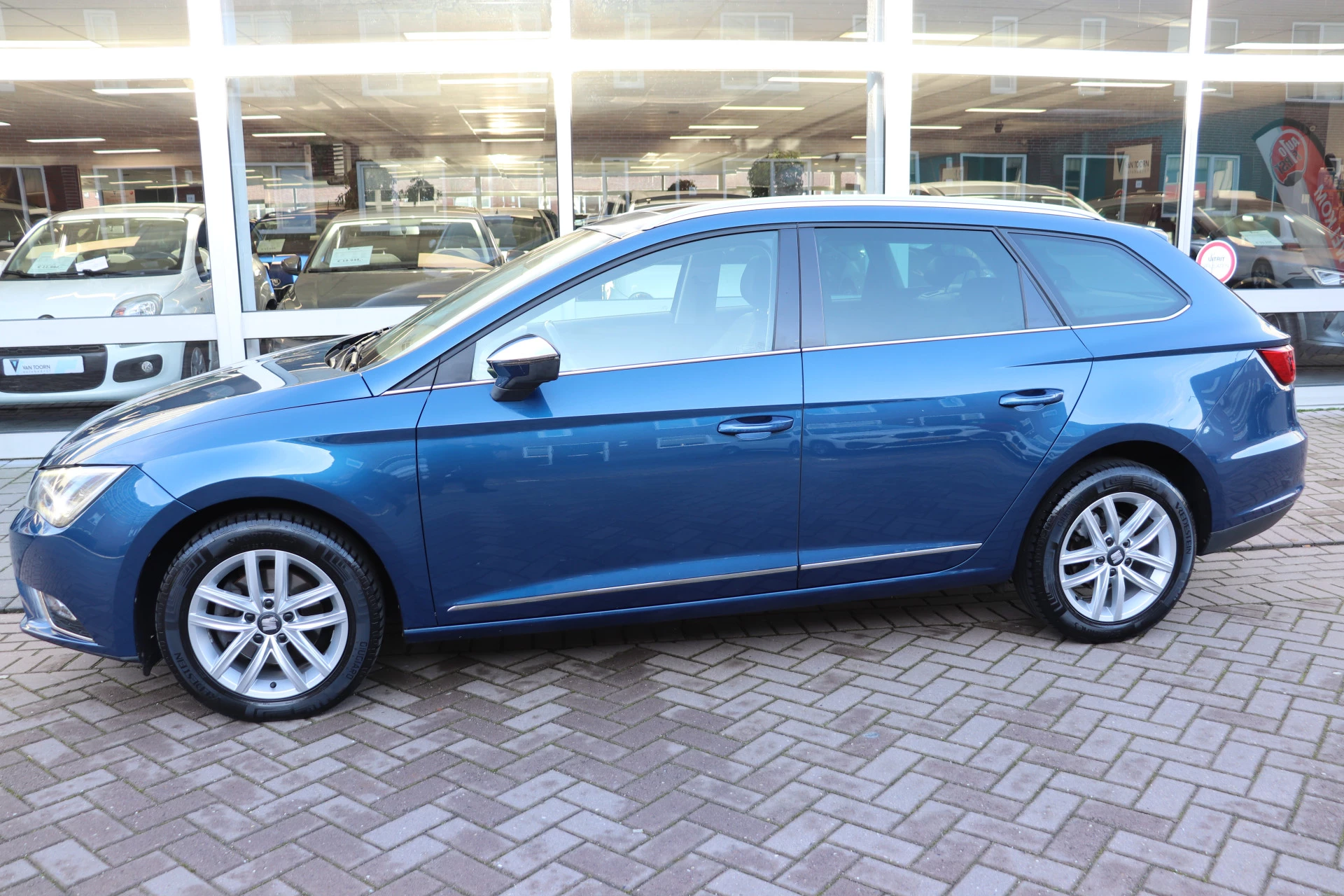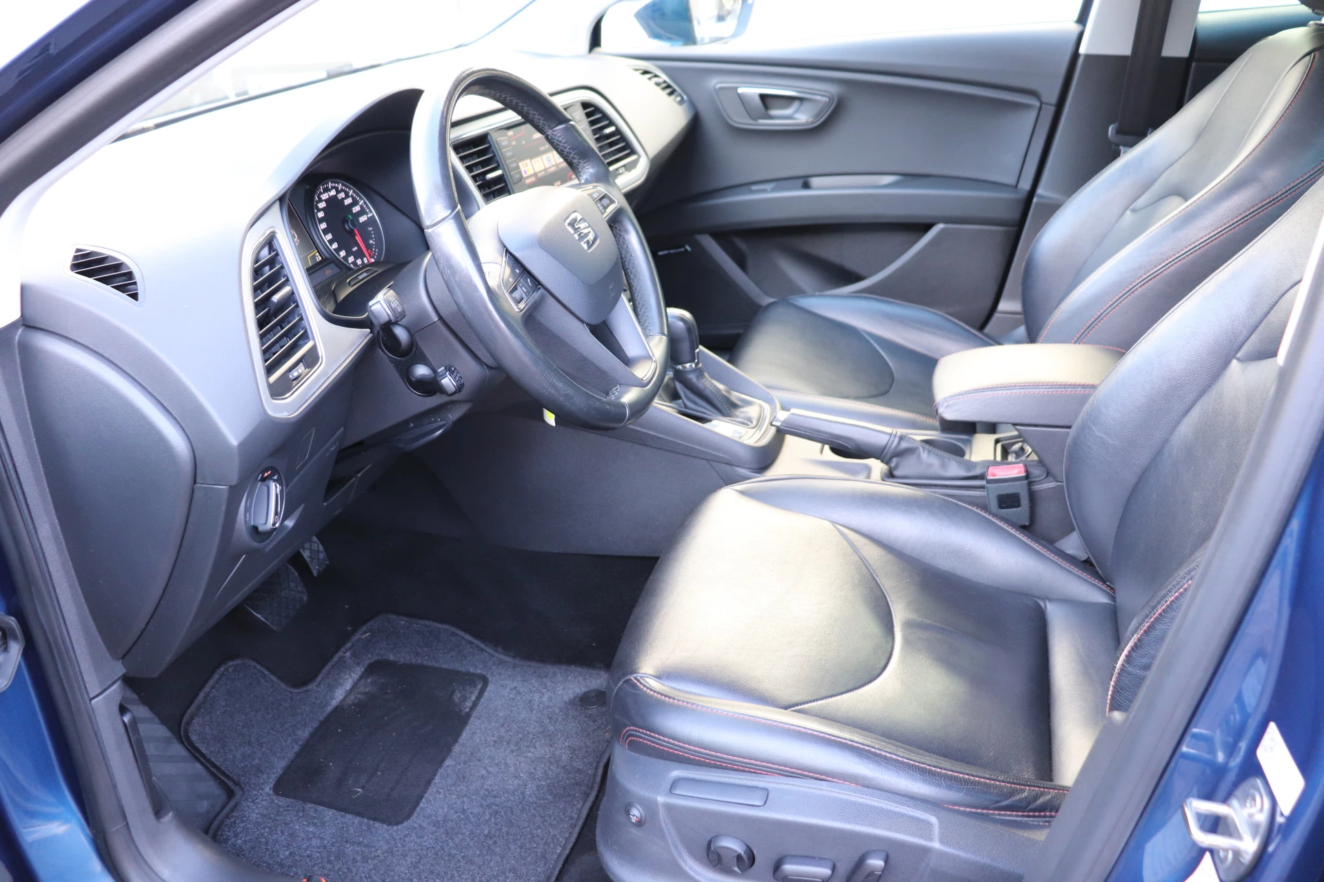 Seat rijden is een kwestie van gevoel, gebouwd op vooruitstrevende techniek. Dat noemen ze nou auto emocion. Hij heeft een benzinemotor en een automatische transmissie. De lederen bekleding geeft het interieur een rijke en luxe uitstraling. 's Winters op pad gaan kan een behoorlijke uitdaging zijn. Daarom is deze SEAT Leon ST voorzien van weldadige verwarmbare voorstoelen. U blijft ook in de scherpe bochten goed ondersteund door de fraaie sportstoelen. Een heerlijk zonnetje, of indrukwekkende wolkenpartijen? Bekijk ze onbelemmerd door het elektrisch bediende glazen panoramadak. Ook 16 inch lichtmetalen velgen, LED koplampen, donker getint glas achter, in delen neerklapbare achterbank, LED-achterlichten en verstelbare lendensteunen zijn aan boord.