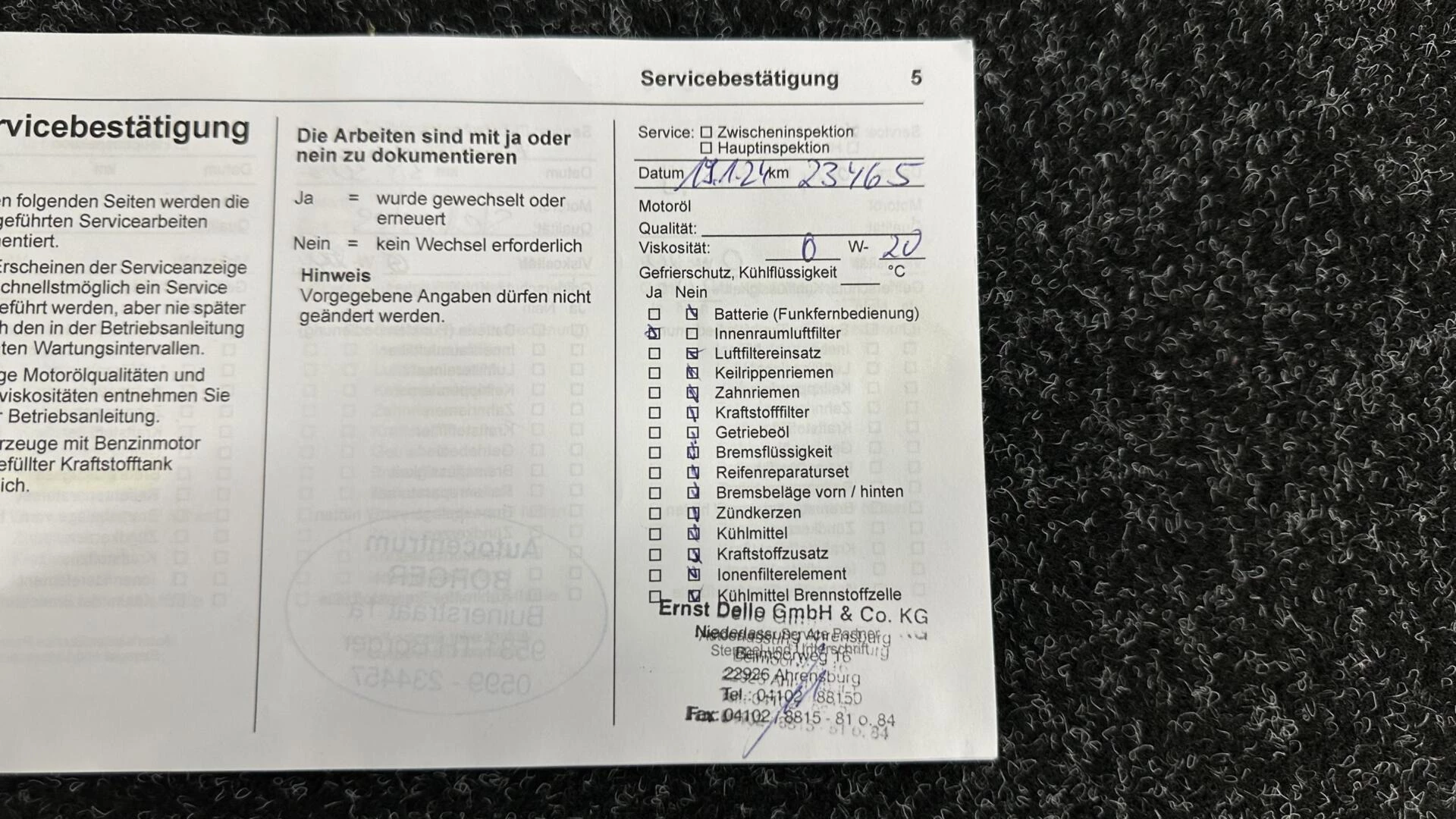 Inclusief onderhoudsbeurt.