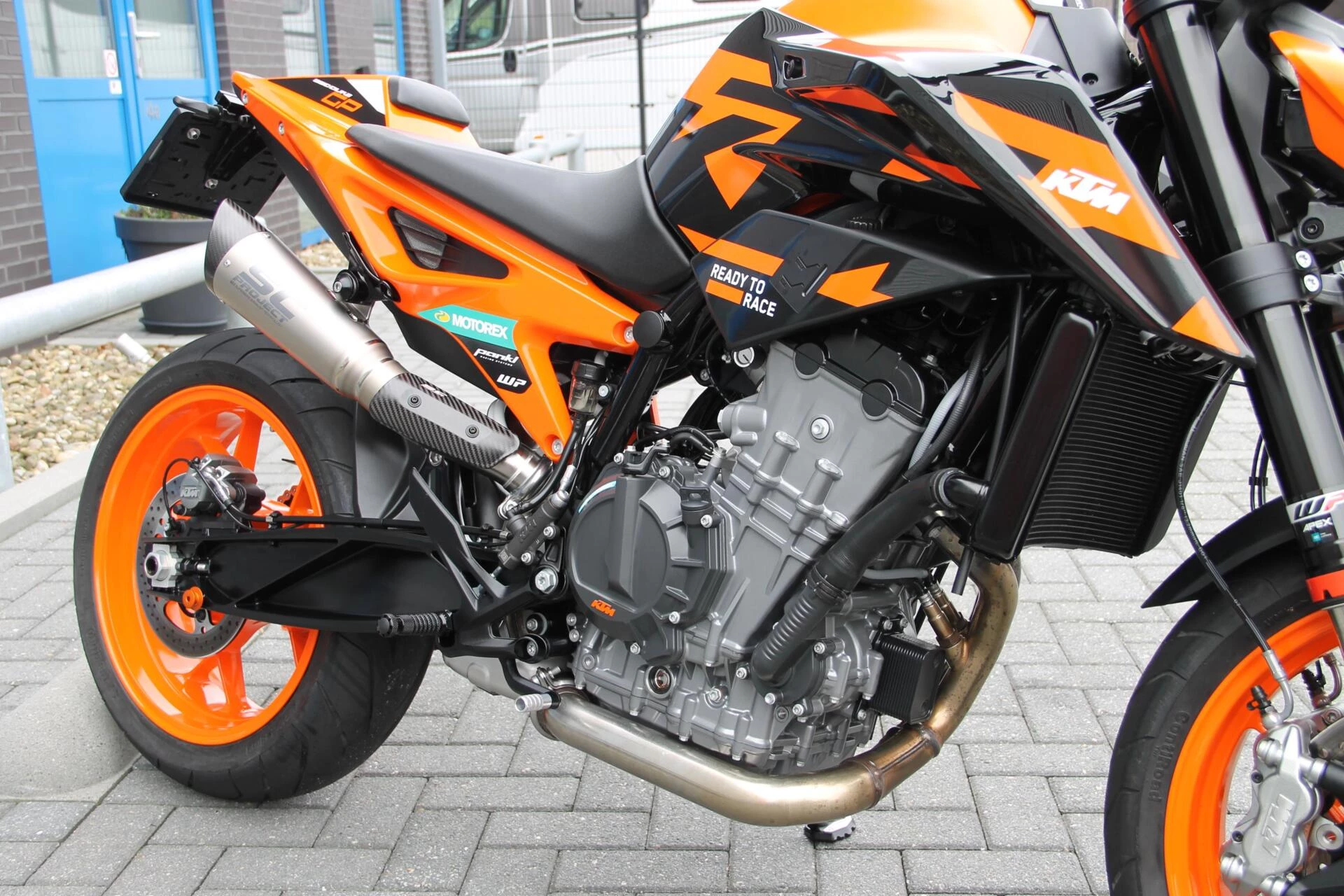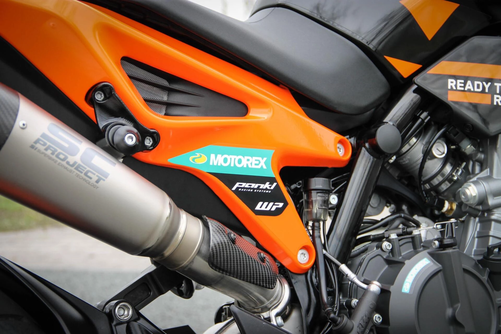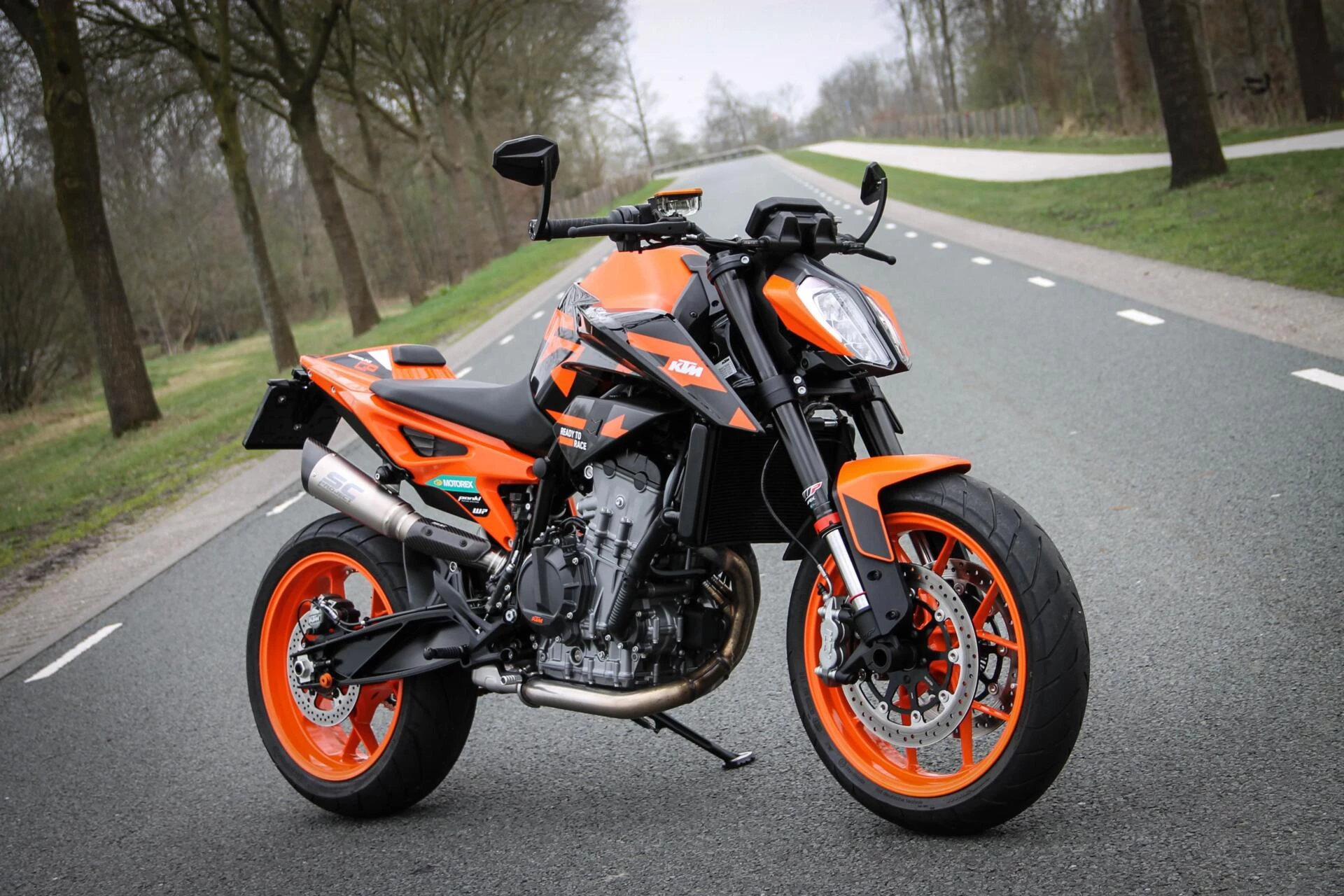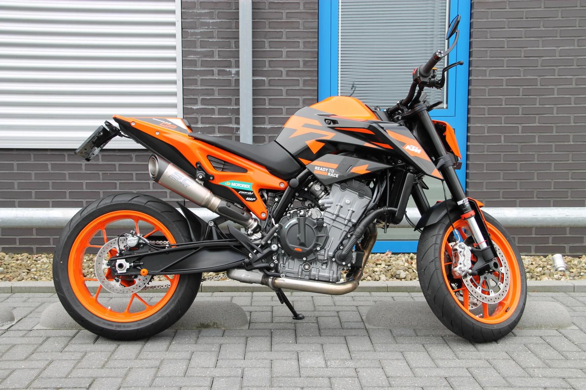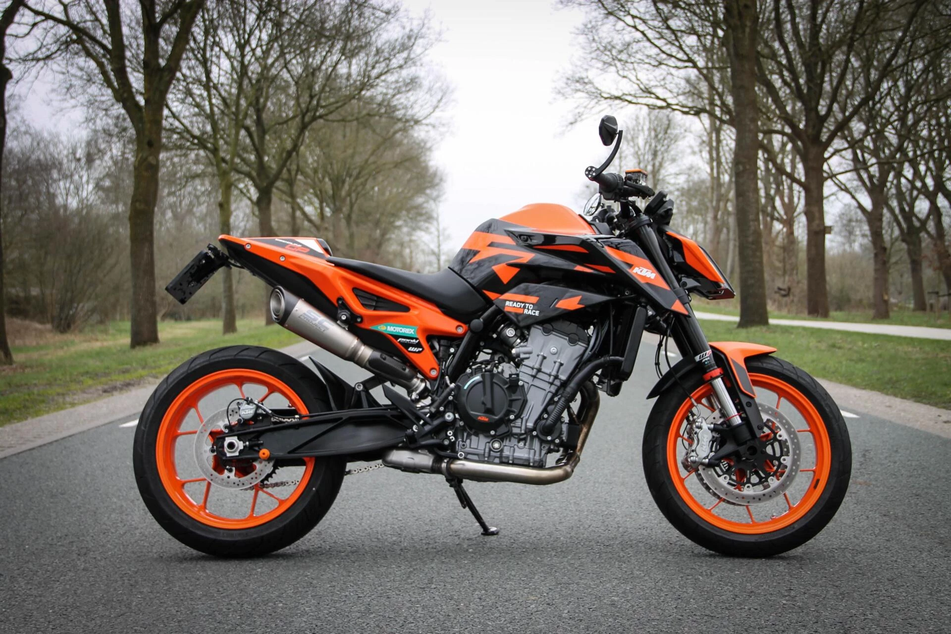 De gemonteerde SC‑Project S1 titanium demper geeft deze Duke een indrukwekkend diepe, sportieve sound en tilt de beleving naar een hoger niveau. Licht, hoogwaardig en volledig passend bij het karakter van deze machine.