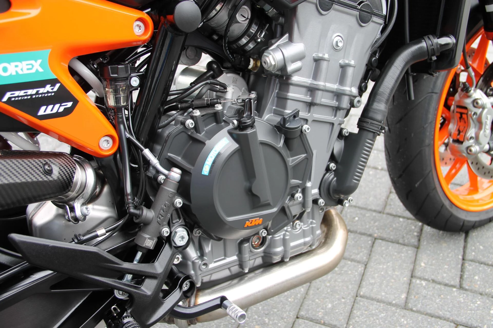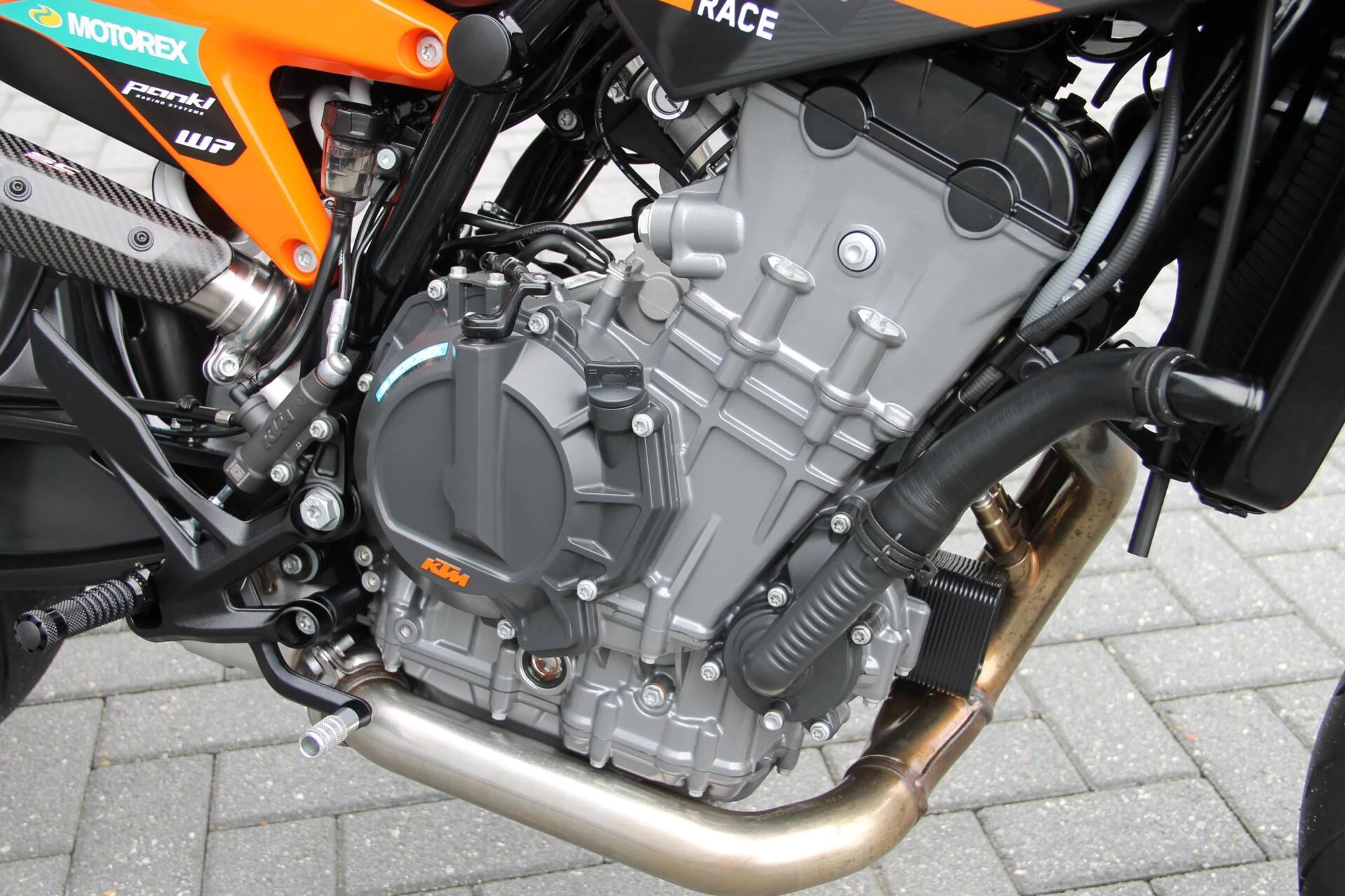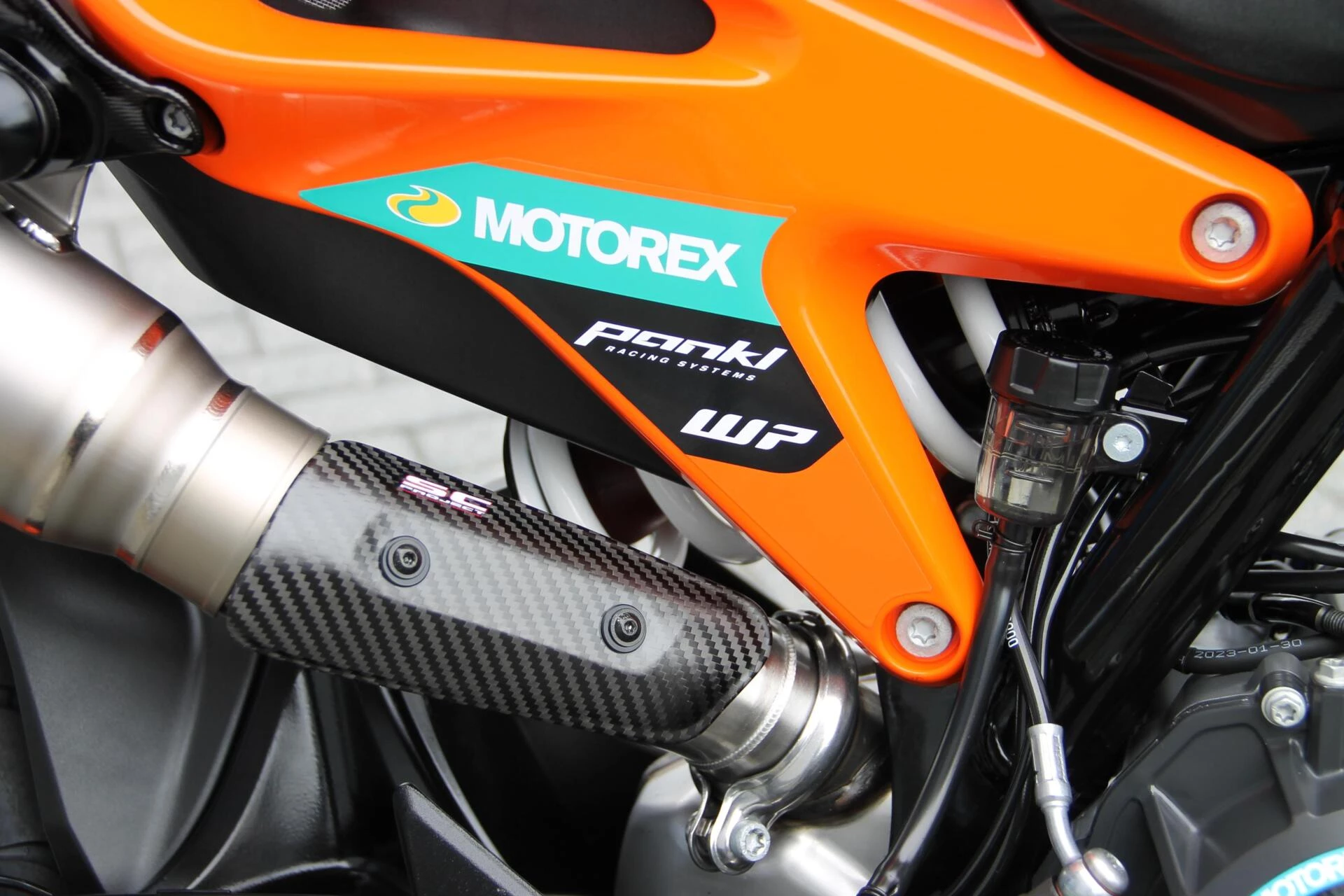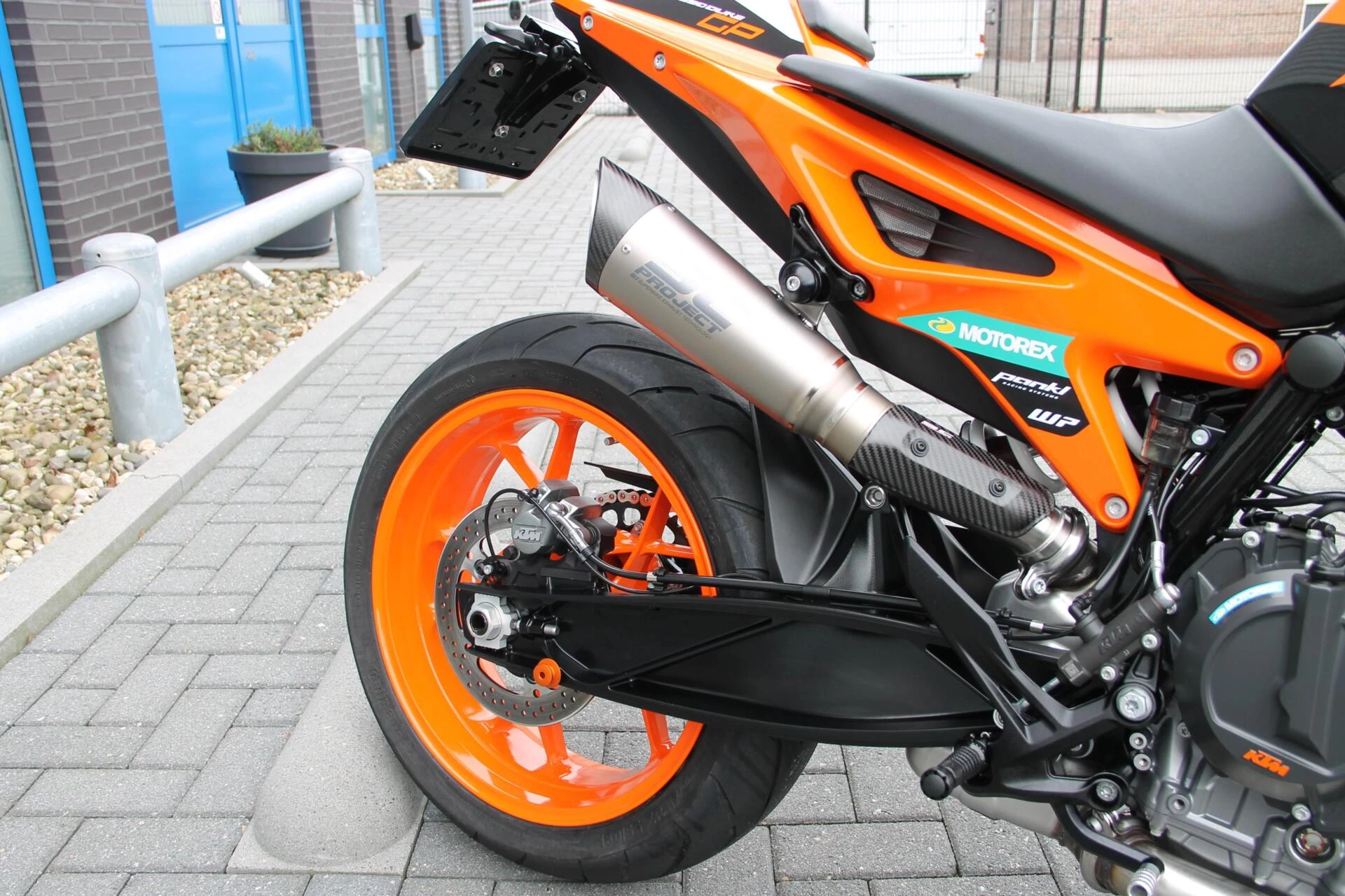 De gemonteerde SC‑Project S1 titanium demper geeft deze Duke een indrukwekkend diepe, sportieve sound en tilt de beleving naar een hoger niveau. Licht, hoogwaardig en volledig passend bij het karakter van deze machine.