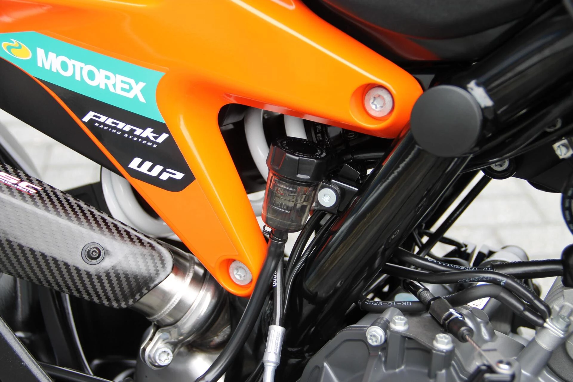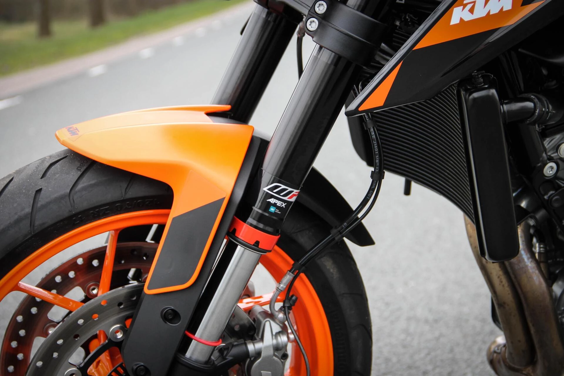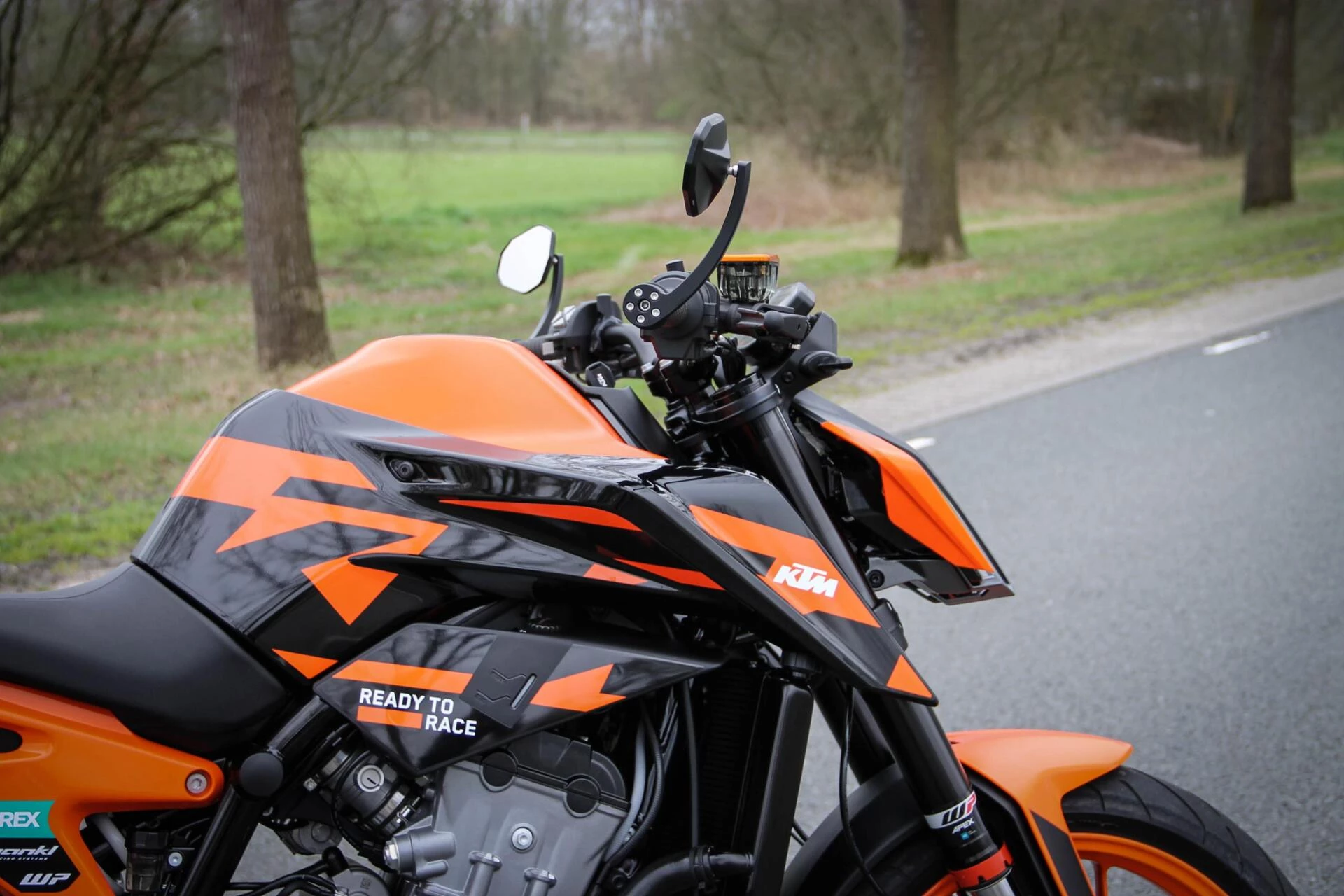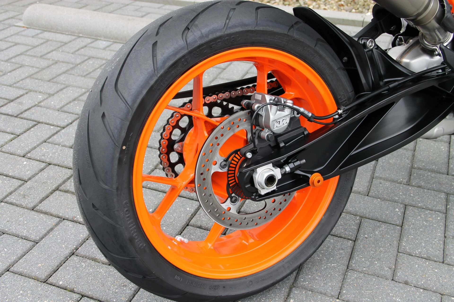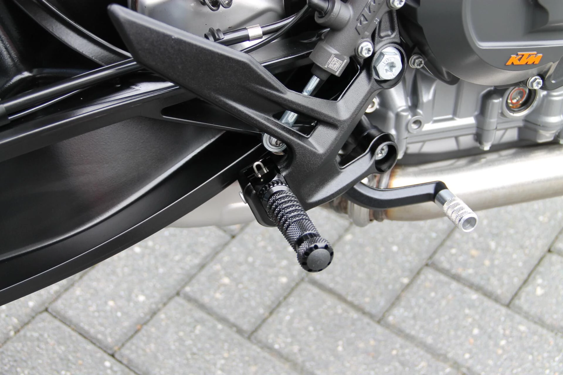 De gemonteerde SC‑Project S1 titanium demper geeft deze Duke een indrukwekkend diepe, sportieve sound en tilt de beleving naar een hoger niveau. Licht, hoogwaardig en volledig passend bij het karakter van deze machine.