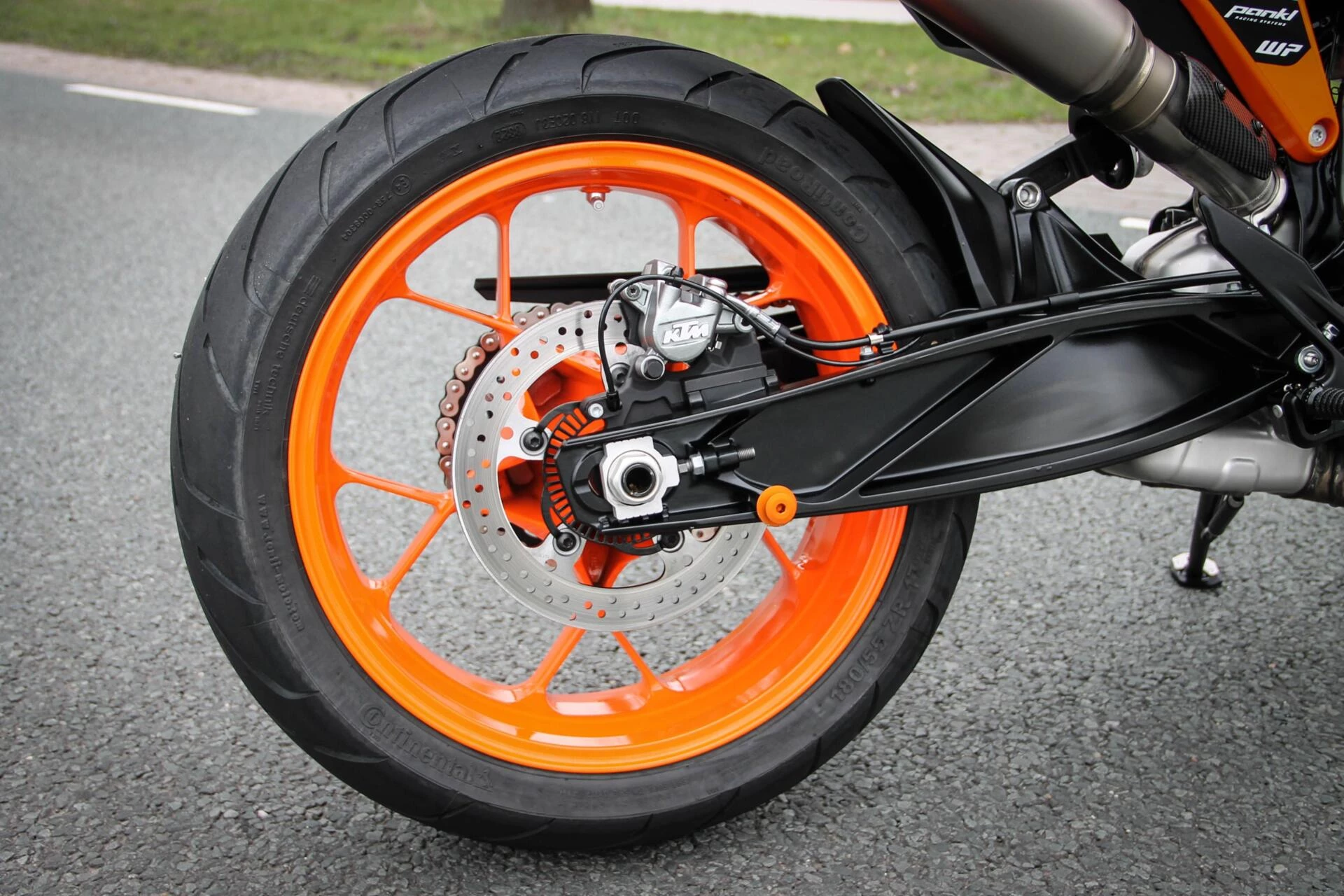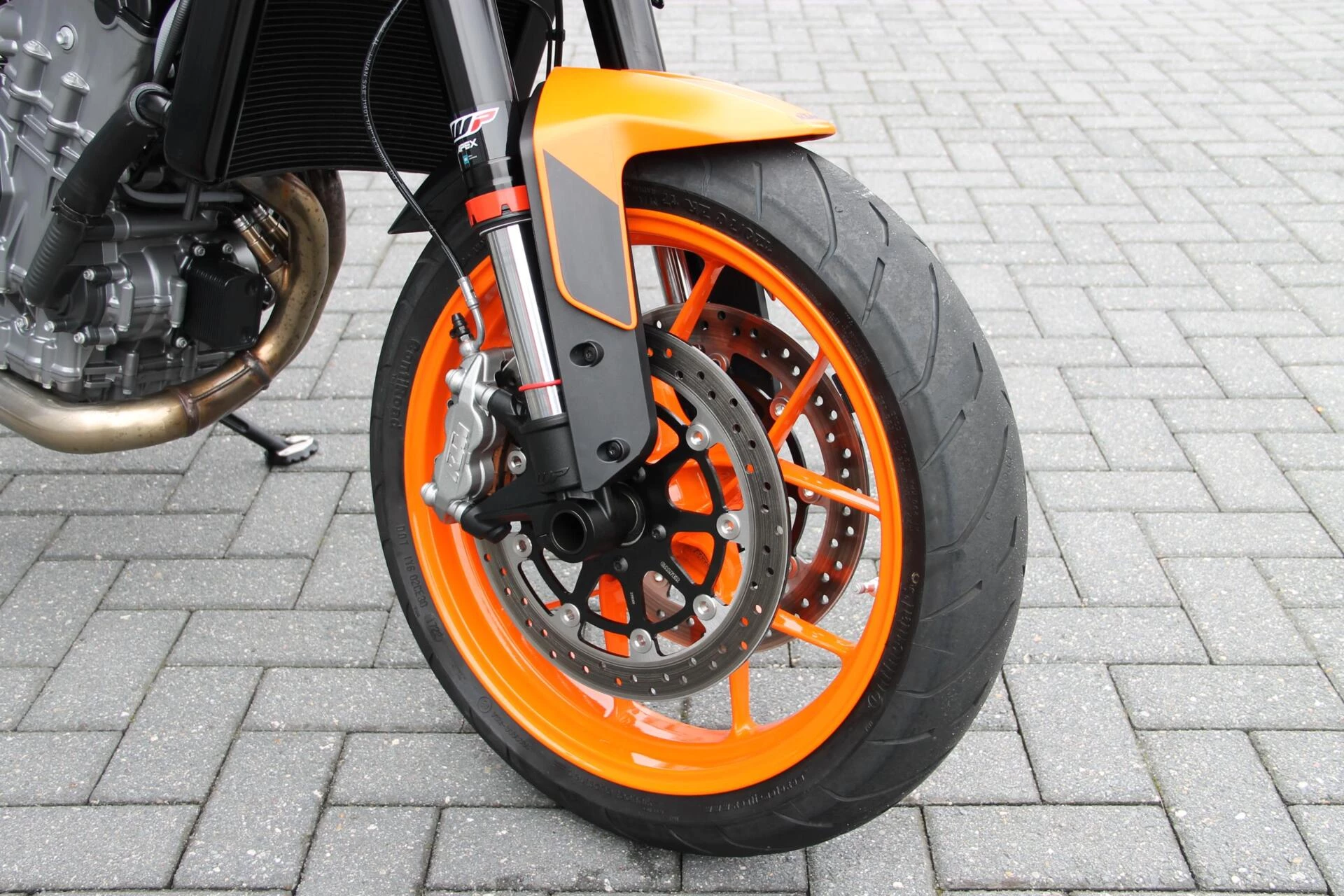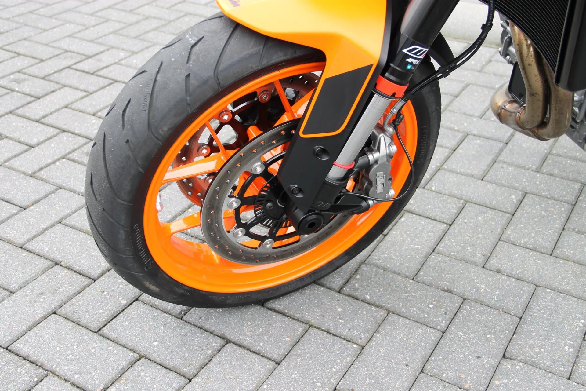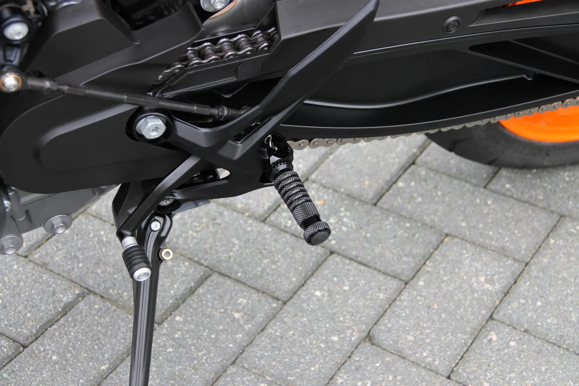 De gemonteerde SC‑Project S1 titanium demper geeft deze Duke een indrukwekkend diepe, sportieve sound en tilt de beleving naar een hoger niveau. Licht, hoogwaardig en volledig passend bij het karakter van deze machine.