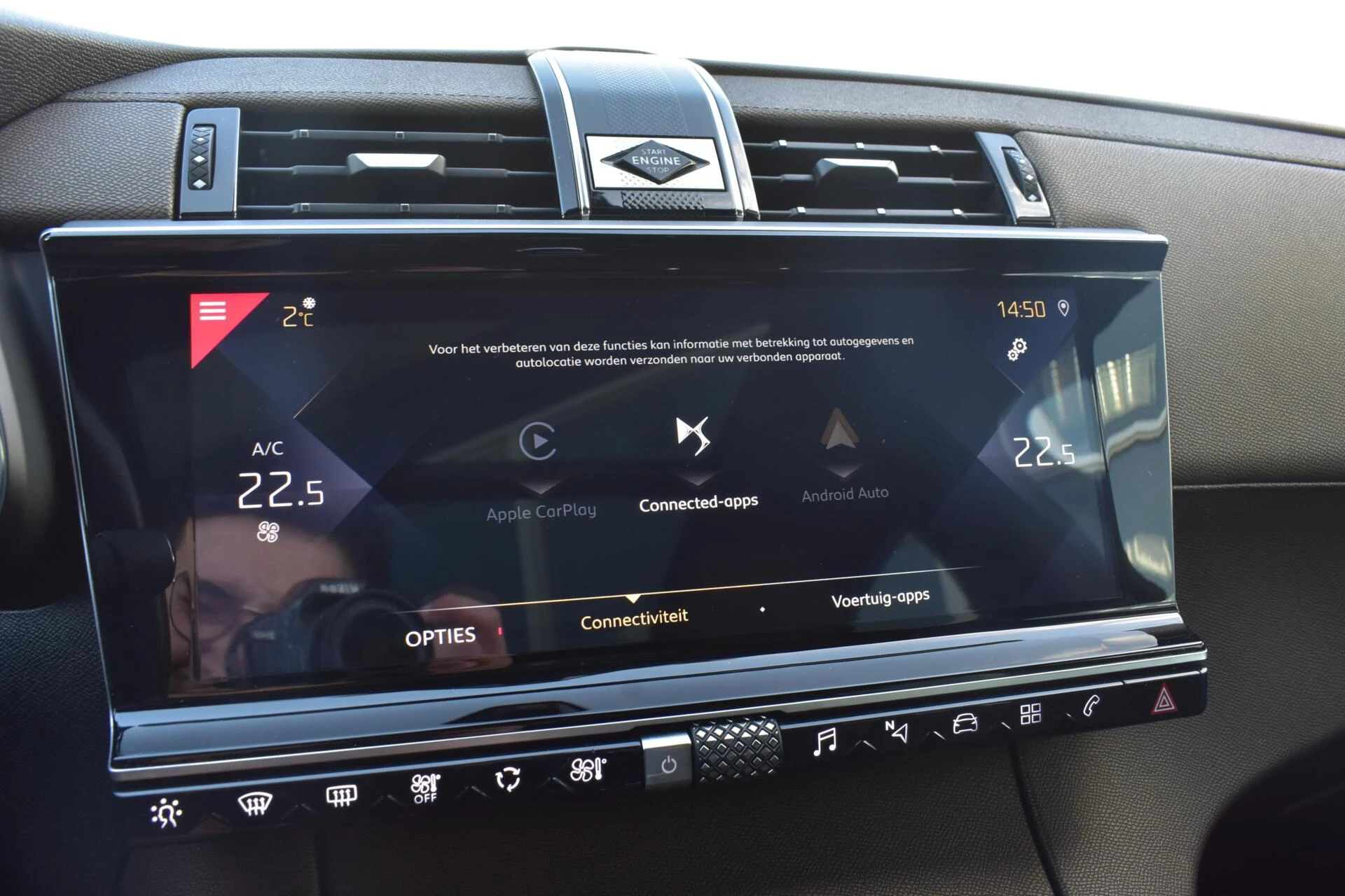 In één oogopslag heeft u alle benodigde functies onderweg in beeld, dankzij het slim ingedeelde digitale dashboard. Hoeveel ruimte heeft u nog bij het inparkeren? De achteruitrijcamera brengt helder in beeld wat zich achter de auto bevindt en geeft een geluidssignaal. Via uw smartphone en Connected Services checkt u eenvoudig de belangrijke functies van de auto, overal en altijd. U kunt het audio-installatiesysteem met DAB-ontvangst en het navigatiesysteem bedienen met de knoppen op het stuur of zelf met uw stem. Onderweg de smartphone opladen gaat helemaal zonder snoeren, door de draadloze telefoonlader. De uitrusting van deze Ds is met electronic climate control, regensensor, cruise control, automatisch dimmende binnenspiegel, lederen stuur en isofix-aansluiting behoorlijk compleet.
