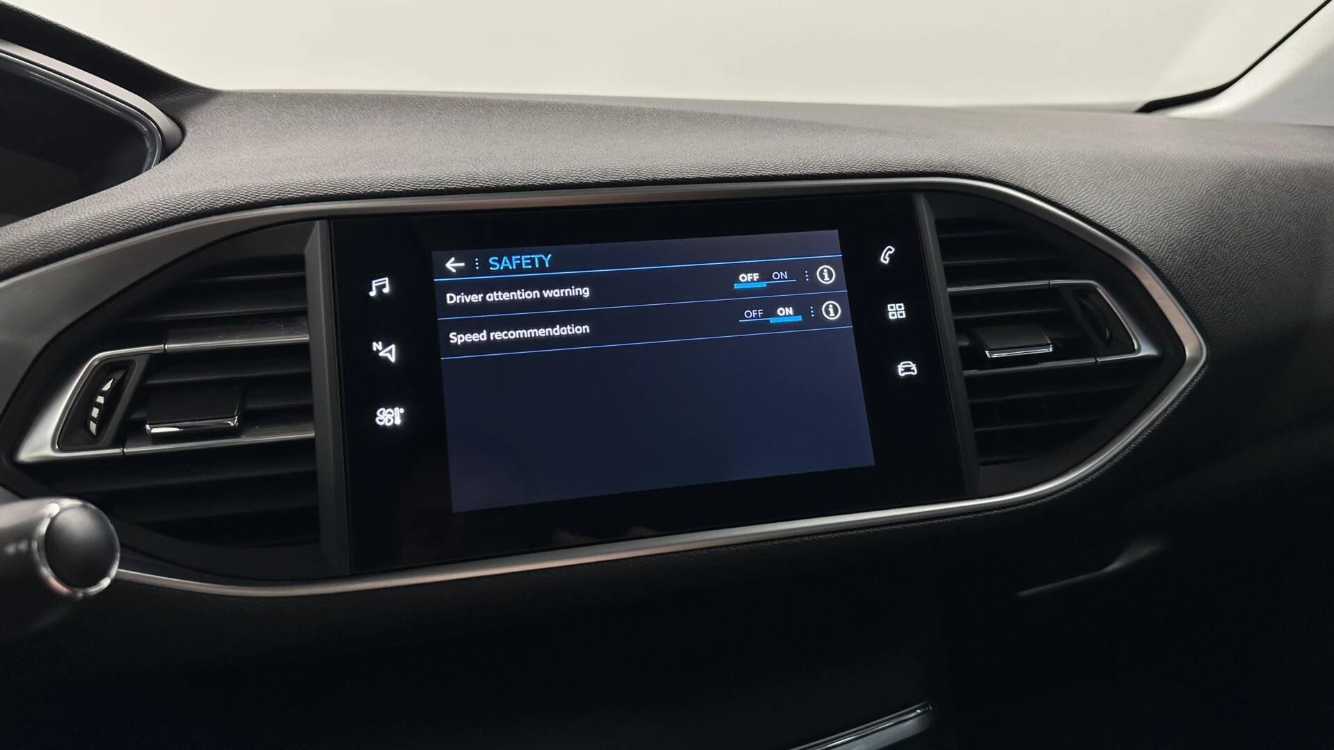 Zoals u mag verwachten van deze Peugeot 308 SW is hij uitgerust met een reeks aan actieve veiligheidssystemen. Onderweg zorgt verkeersborddetectie ervoor dat u geen waarschuwingsbord mist. Het Lane-keeping systeem let constant op en waarschuwt of corrigeert als u onoplettend over de lijnen van de rijstrook gaat. Bij concentratieverlies van de bestuurder geeft vermoeidheidsherkenning automatisch een waarschuwingssignaal. Dankzij veiligheidsvoorzieningen als brake assist en bandenspanningcontrolesysteem, bent u steeds veilig onderweg.