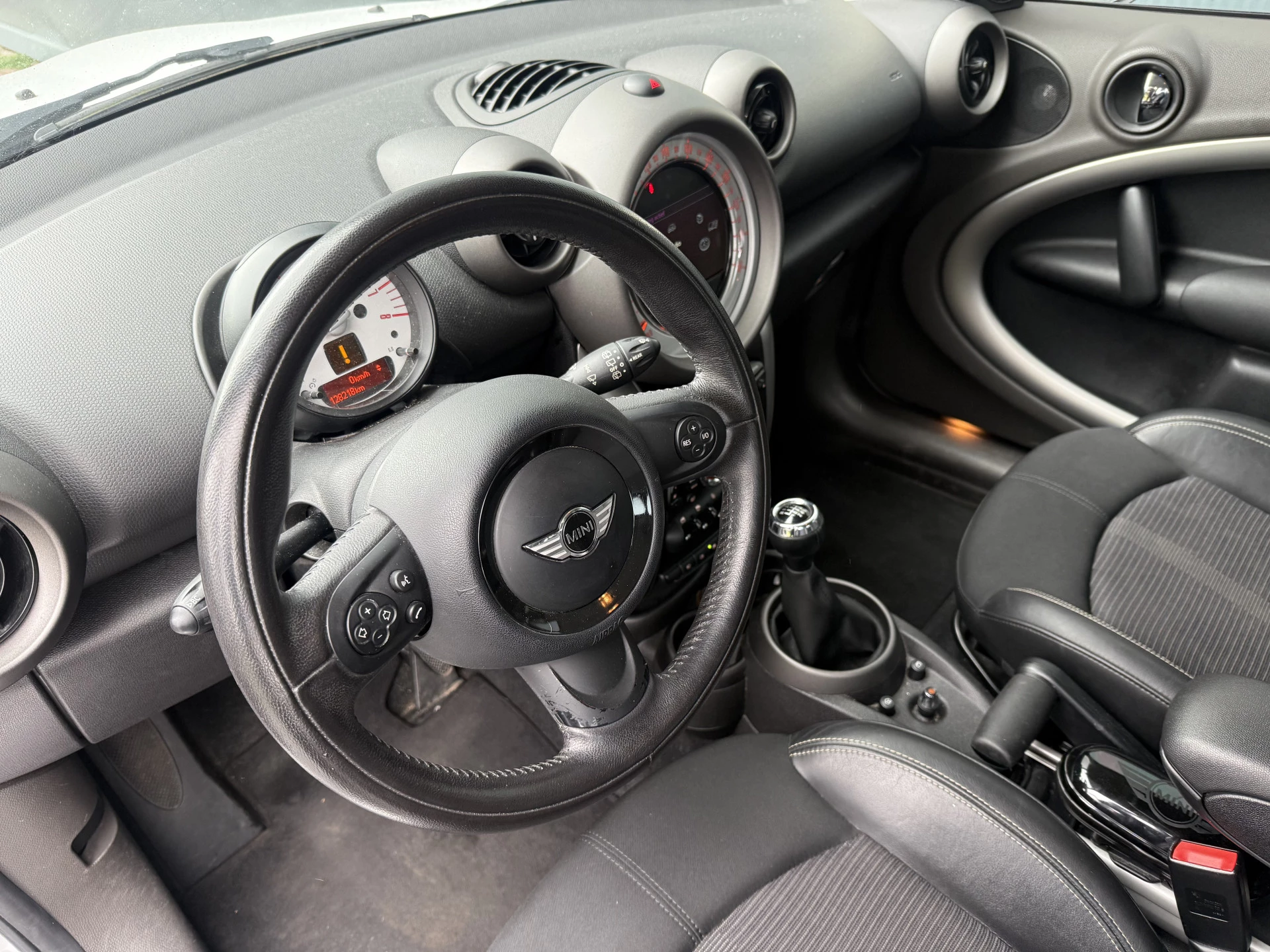 Zeer mooie, ruime, praktische, sportieve en complete Mini Countryman 1.6i 122pk Cooper met Chili pakket met o.a: Pure white lakkleur, sportstoelen voor met half lederen bekleding, breedbeeld kaartnavigatie, climate control airco, verwarmde voorruit, bluetooth telefoon aansluiting, Aux en USB-aansluiting, 4-elektrische ramen, centrale deurvergrendeling op afstand, multifunctioneel lederen sportstuurwiel, cruise control, bekerhouders voor, bumpers in kleur, buitenspiegels en dak kleur in hoogglans zwart, getint glas, privacy glas achter, PDC-achter, in delen neerklapbare achterbank, 5-zitplaatsen en originele 17-inch. lm-velgen sterspaak design. Van tweede eigenaar in absolute nieuwstaat met slechts 128.218km !