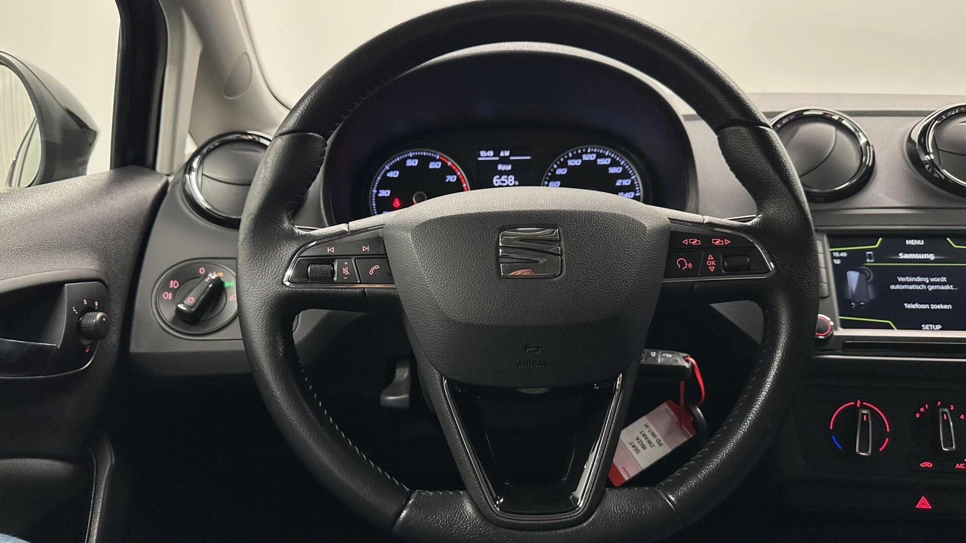 Prettig, altijd weten waar je moet zijn en hoe lang de rit nog duurt met het navigatiesysteem. Veiligheid en gemak zijn er in alle opzichten. Neem bijvoorbeeld de audiobediening op het stuur. Parkeerplekken worden er niet ruimer op. Maar met de aanwezige parkeersensoren krijgt u deze Seat Ibiza zonder problemen op z'n plaats. Natuurlijk is deze Seat Ibiza voorzien van cruise control. Het hele jaar door zorgt airconditioning voor een prettige temperatuur. Natuurlijk behoren lederen stuur, isofix-aansluiting, centrale deurvergrendeling met afstandsbediening, boordcomputer en lederen versnellingspook ook tot de uitrusting van deze complete auto.