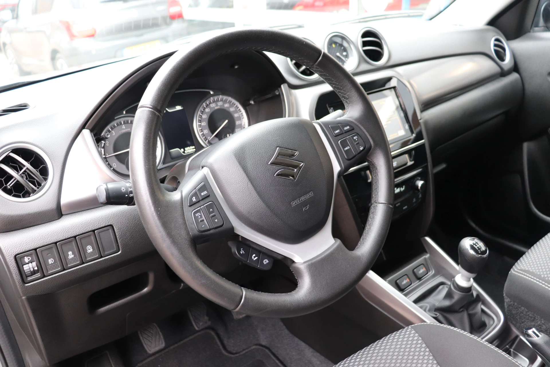 Zodra u naar de 'R' schakelt, gaat de achteruitrijcamera in werking en heeft u een perfect zicht op alles wat zich achter de auto afspeelt. Onbedoeld snijden na het inhalen gebeurt niet meer, dankzij de achteropkomend verkeer waarschuwing. De auto is ook uitgevoerd met electronic climate control. Andere zender? Het geluid aanpassen? Dat kan allemaal moeiteloos door de audiobediening op het stuur. Met de DAB-ontvanger luistert u naar glasheldere digitale radio. Deze Suzuki is voorzien van cruise control, lederen stuur, centrale deurvergrendeling met afstandsbediening, bagage afdekhoes en boordcomputer.