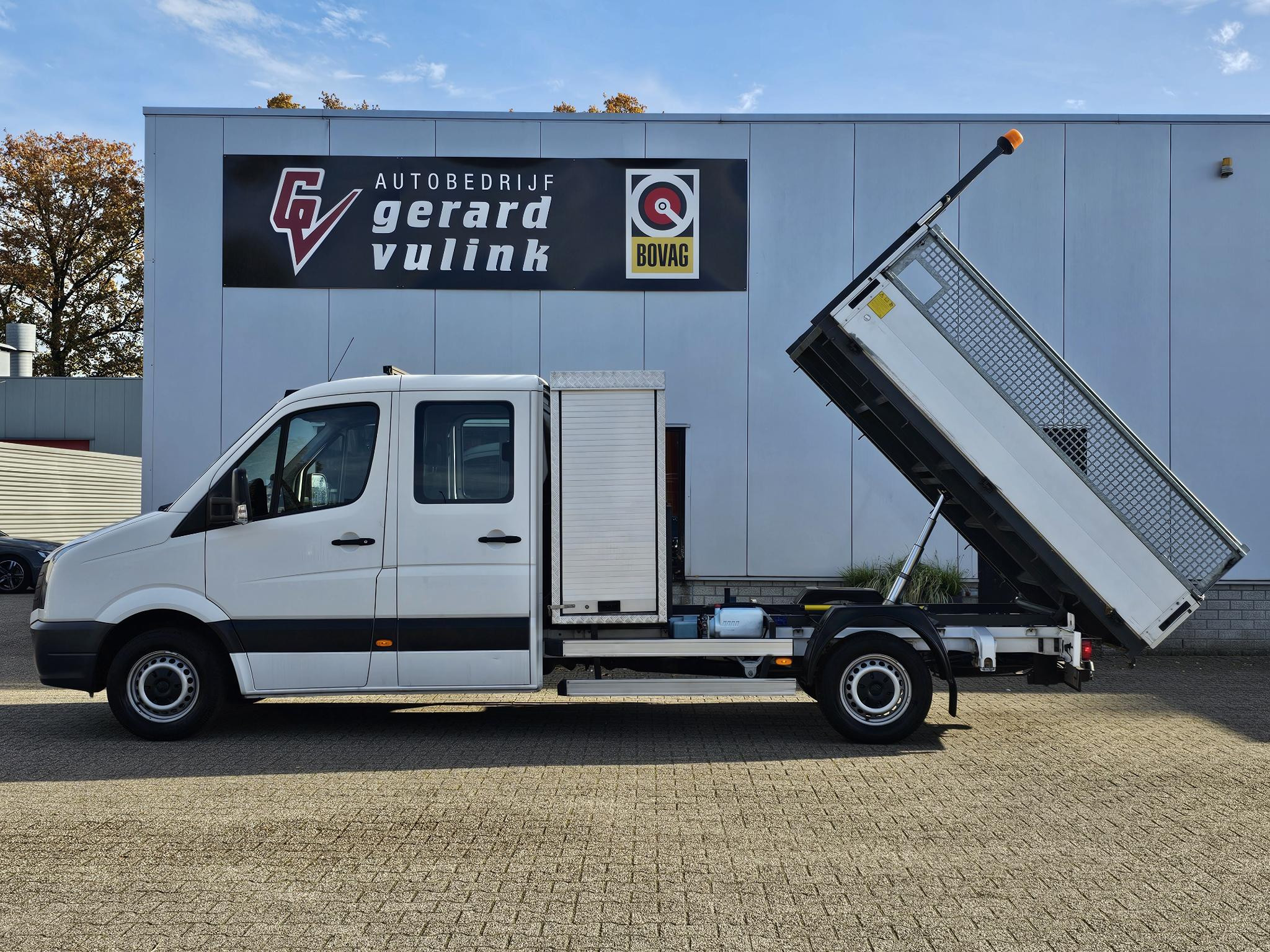 Super leuke en handige VW Crafter Kiepwagen! Voorzien van een dubbelcabine en handige opbergkast achter de cabine met deuren links en rechts. Plek voor 6 personen! Deze bedrijfsauto is voorzien van een trekhaak en mag 3.500kg trekken.