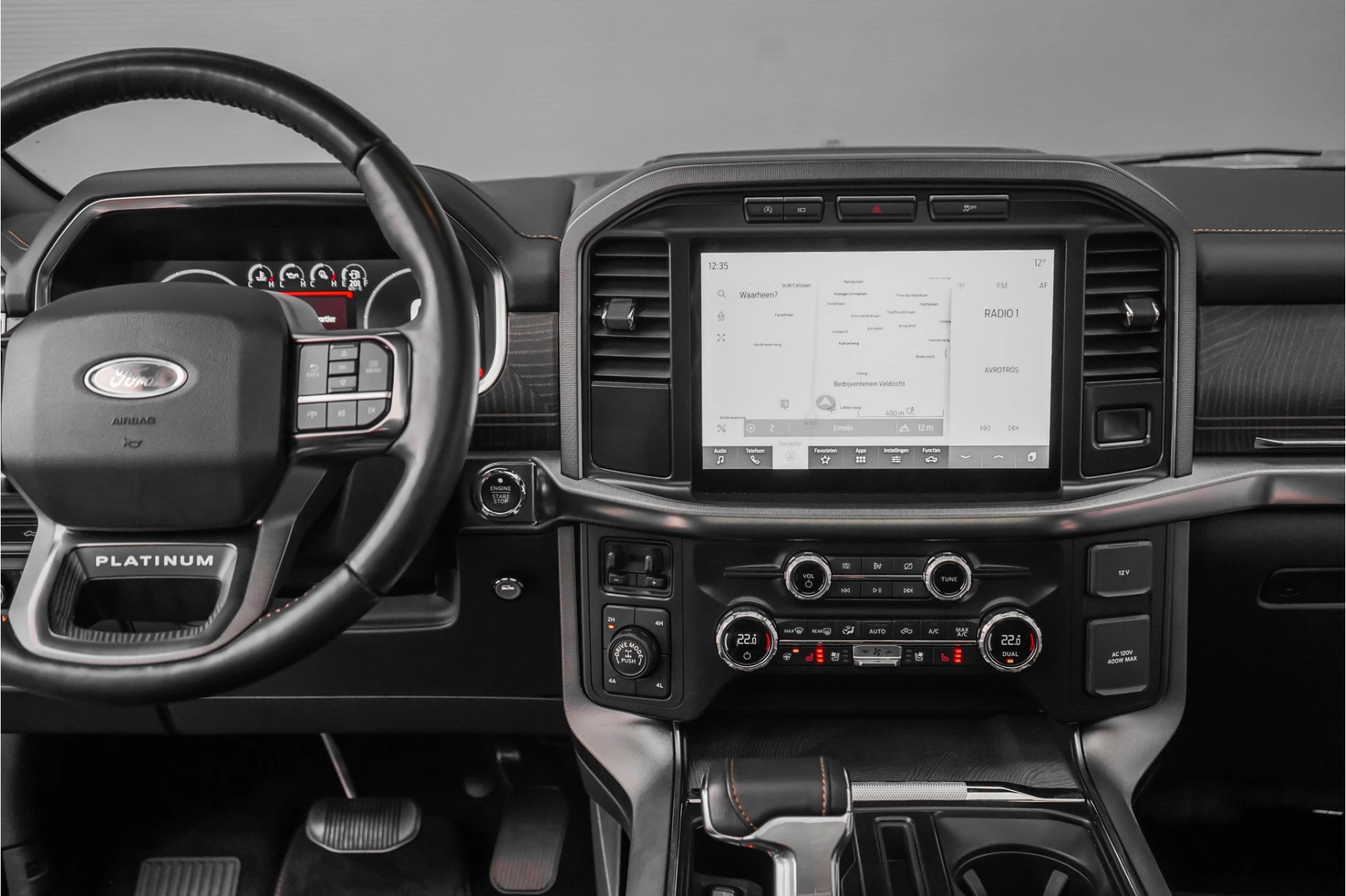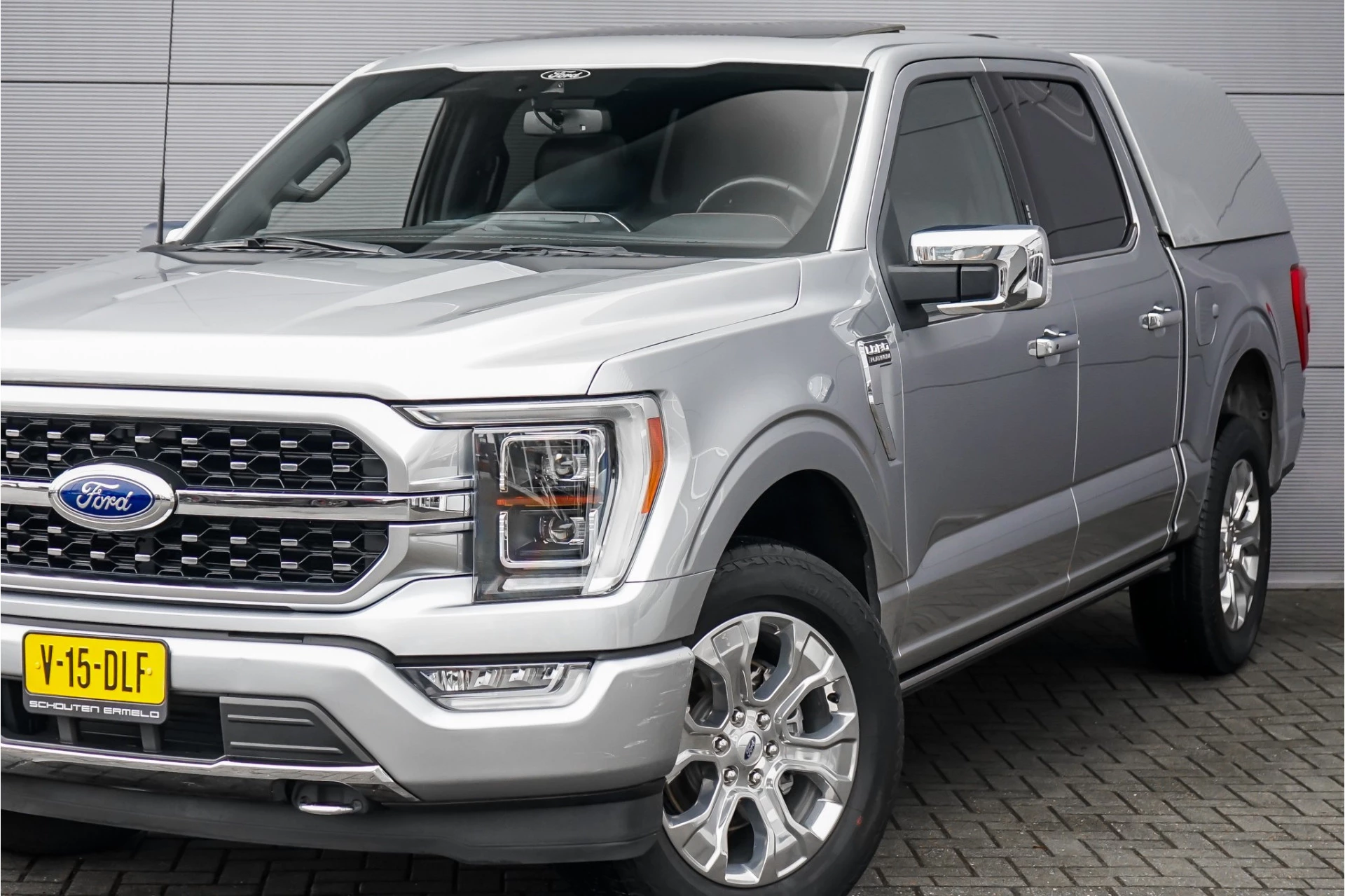 Autobedrijf Schouten biedt u deze Ford USA F150 3.5 V6 EcoBoost Platinum CrewCab aan, origineel Nederlands en afkomstig van de eerste eigenaar. Het exterieur is uitgevoerd in de prachtige kleur: 'Grey Metallic', gecombineerd met een zwart / bruin lederen interieur. Verder beschikt de Ford USA F150 over een mooie lijst met opties, waaronder: