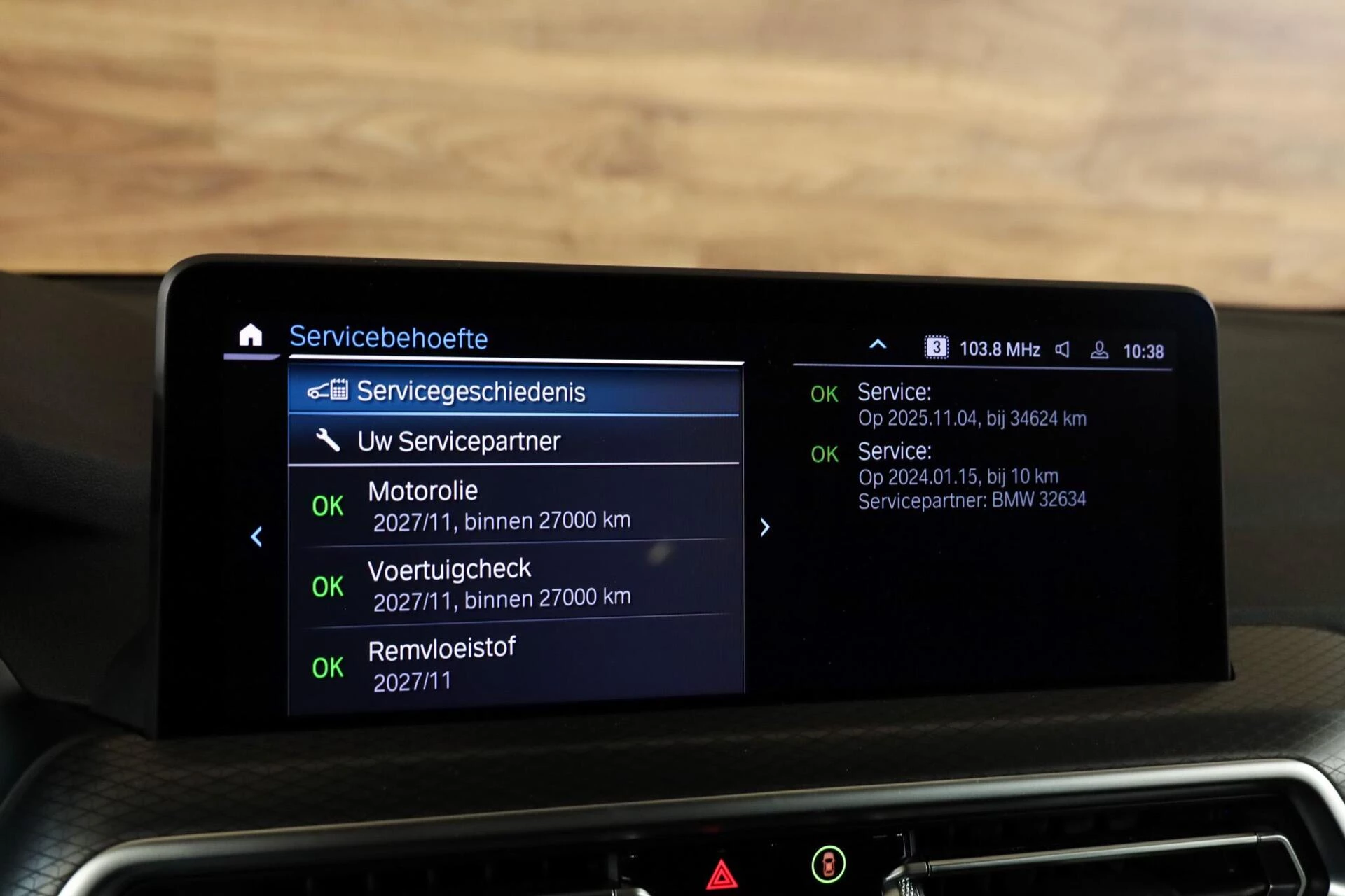 Deze X3 heeft recentelijk onderhoud gehad bij 34.624km. Dit is dan ook netjes terug te vinden in de boordcomputer van de auto.