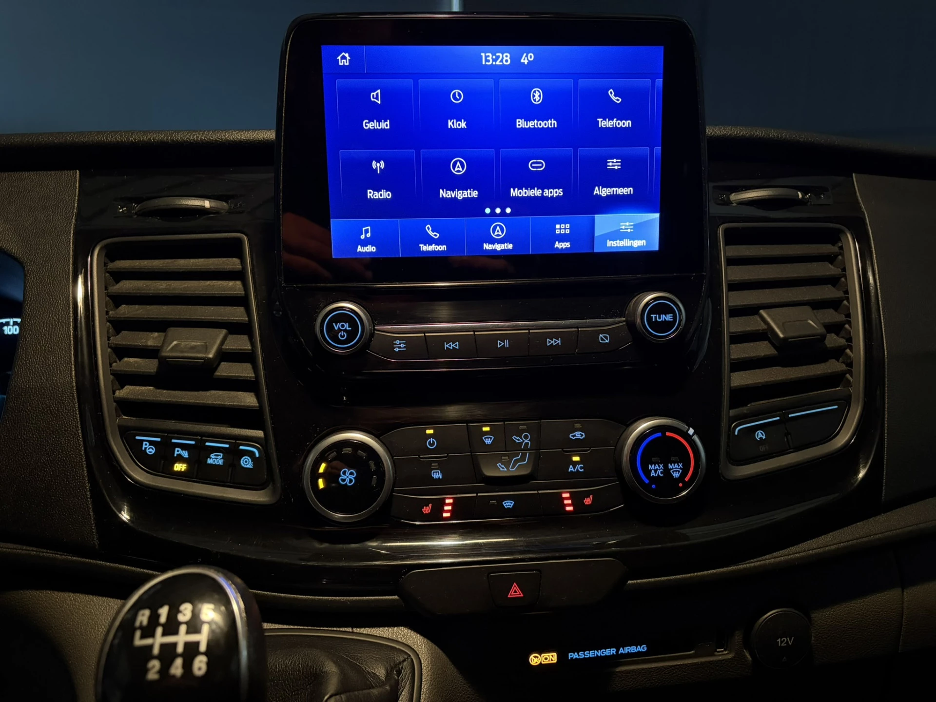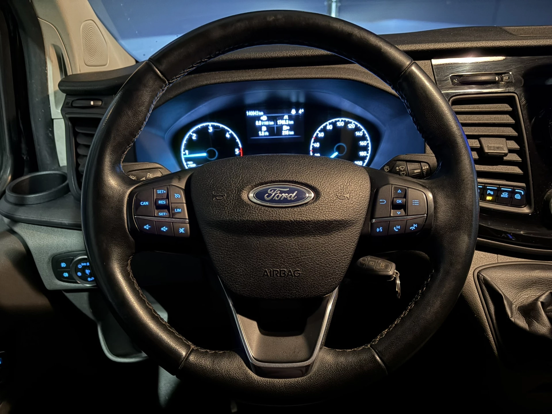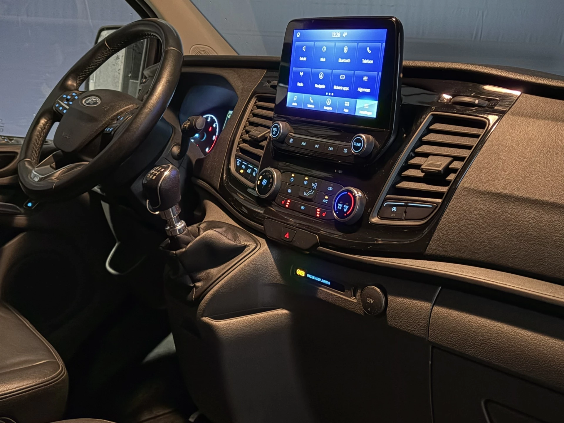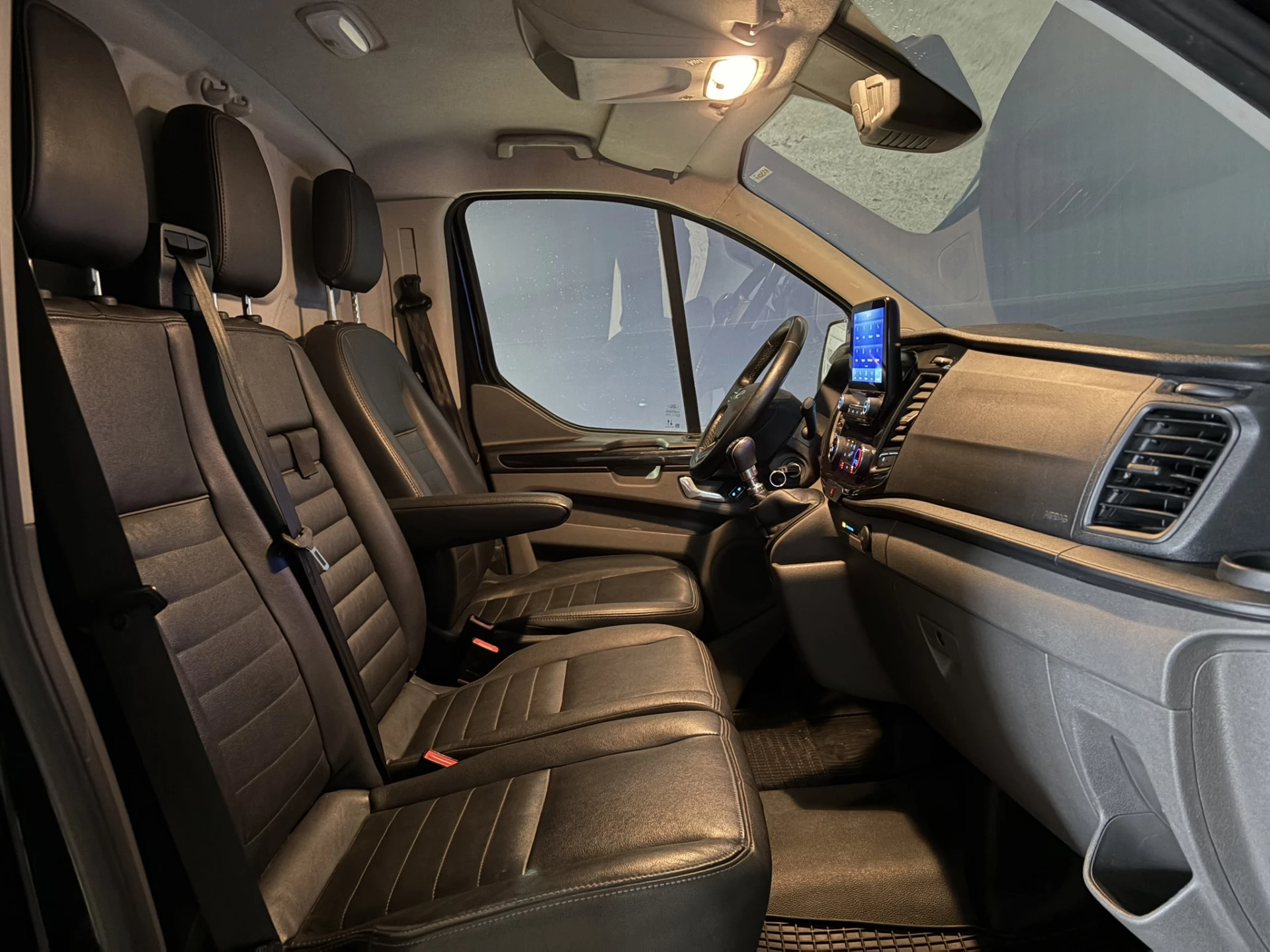 Stoere Ford Transit Custom L2H1 Euro6 met airconditioning, imperiaal en camera. Deze 131pk sterke Custom is uitgevoerd met navigatie, 2800kg trekhaak, LED, Apple Carplay, Android Auto, cruisecontrol, stoelverwarming, verwarmde voorruit, lederen bekleding, lichtmetalen velgen, parkeersensoren, bijrijdersbank en bluetooth telefoonvoorbereiding.