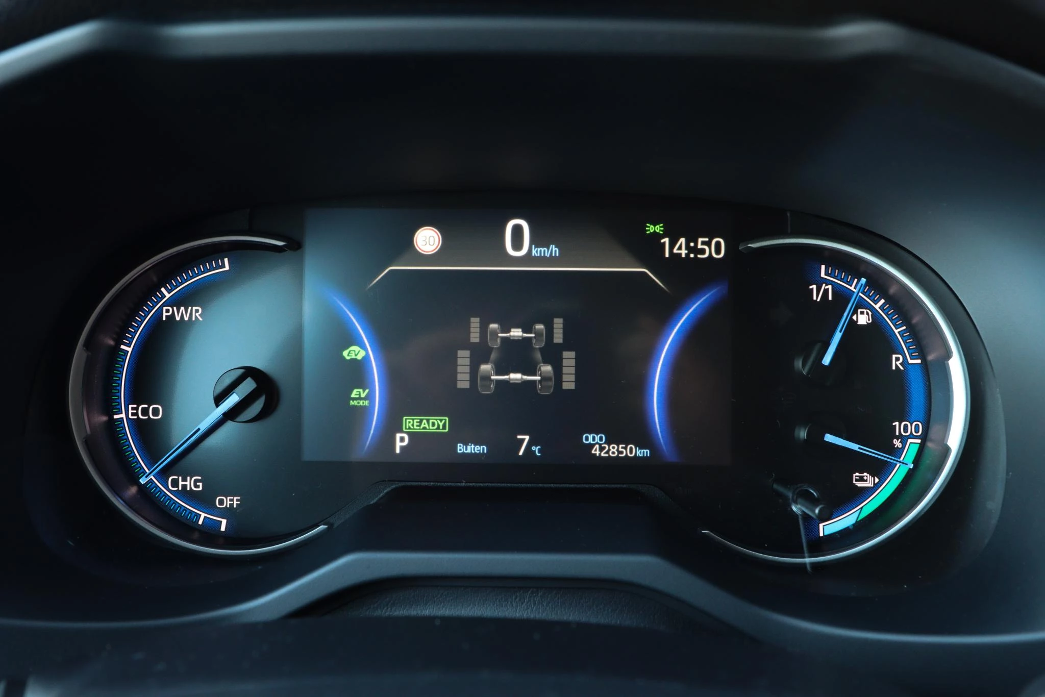 De Toyota RAV4 is ook voorzien van ADAS. Deze Advanced Driver Assistence Systems fungeren als extra ogen en oren: ze houden voor u de weg in de gaten en grijpen in wanneer dat nodig is. Een veilige rit voor ogen: daarvoor zorgt de head-up display! De actuele snelheidslimiet, een inhaalverbod en andere verkeersborden. De verkeersborddetectie ondersteunt u tijdens elke rit. Het Lane-keeping systeem let constant op en waarschuwt of corrigeert als u onoplettend over de lijnen van de rijstrook gaat. De veiligheid van deze auto wordt verder verhoogd door dodehoekdetectie, forward collision warning system, hill hold functie, brake assist, vermoeidheidsherkenning en bandenspanningcontrolesysteem.